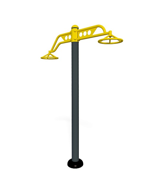 Kamštukai, dangteliai pagaminti iš plastiko. Konstrukcija metalinė, įbetonuojama. Visos metalinės detalės padengtos cinko gruntu ir dažytos milteliniu būdu. Treniruoklis atsparus oro sąlygoms, vandalizmui.