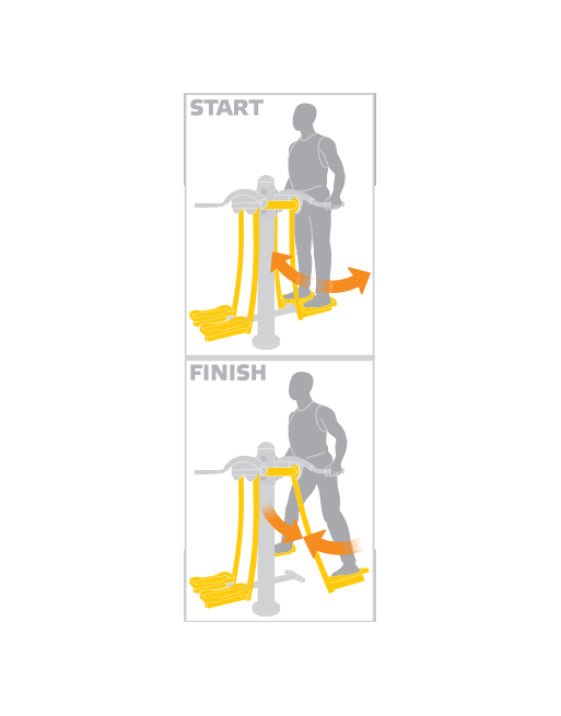 Treniruoklis skirtas kojų ir sėdmenų raumenims lavinti. Pritaikytas naudotojo svoriui iki 130 kg. Vienu metu gali mankštintis du žmonės.