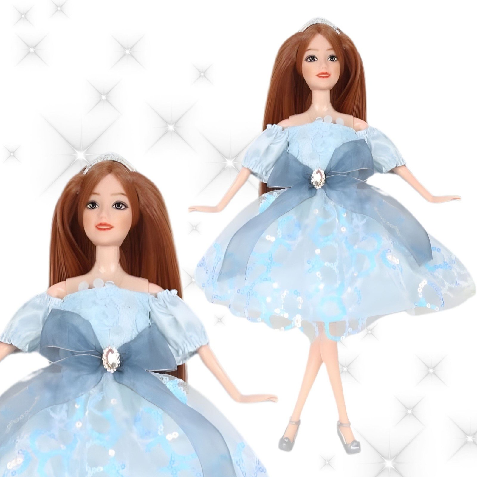 - – Elegantiška lėlė su ilgais rudais plaukais