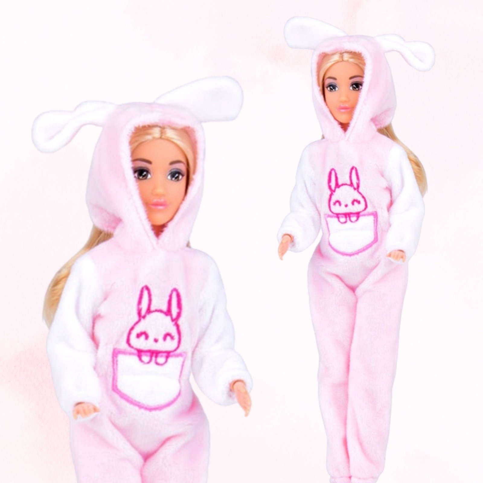 - – lėlės apsirengusios rožiniais triušių kombinezonais