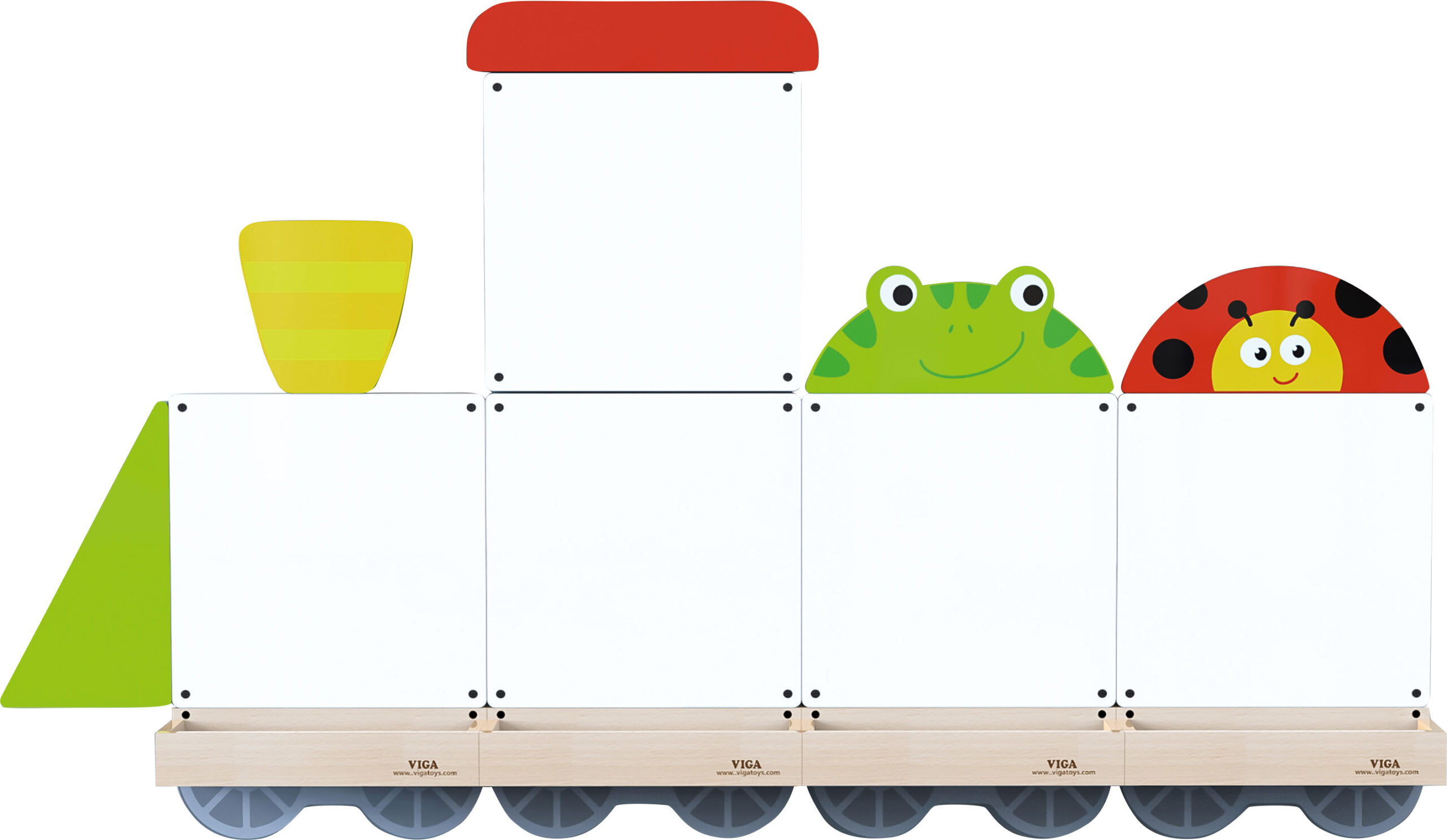 - Traukinio formos medinė sienelė su 5 magnetinėmis lentomis