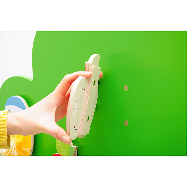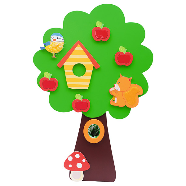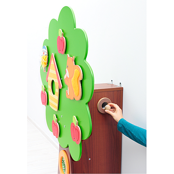 Medžio kamiene yra audinio kišenė, kurioje galima paslėpti įvairius daiktus. Viduje yra tunelis žaidimui su mažu kamuoliu. Vaikas, įmesdamas kamuolį į medžio viršuje esančią skylę, turi bėgti iš kitos kamieno pusės, kad jį pagautų.