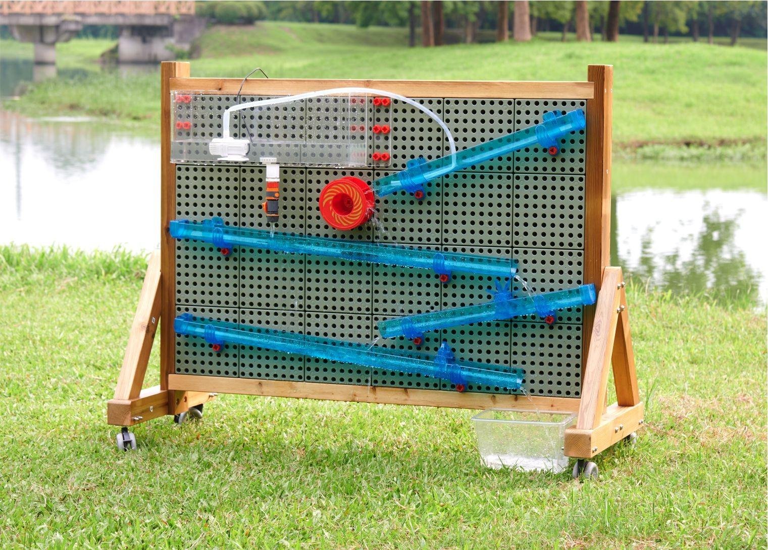 Aukštos kokybės akrilo skaidri vandens talpykla. Ideali papildoma priemonė kuriant įvairias vandens sroves, ji yra suderinama su visomis Masterkidz lauko STEM lentomis. Talpyklą galima naudoti savarankiškai, dėka integruoto vandens nutekėjimo.