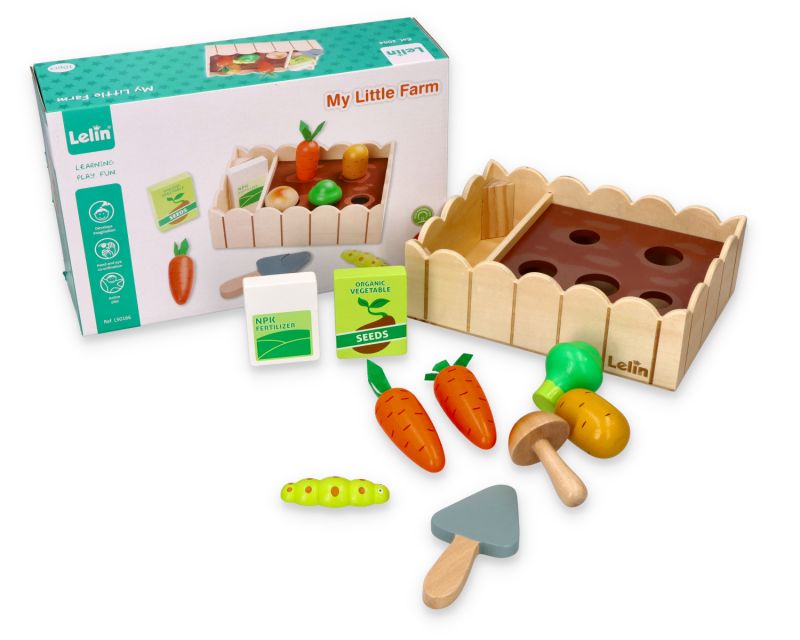 Tai 10 dalių sodininkystės žaidimų rinkinys, skirtas vaikams apsimesti, kad jie žaidžia savo sode. "Dėžutė" yra kaip daržo lysvė, į kurią galima sodinti daržoves ir nuimti derlių, kai jos visiškai užauga.