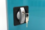 Medicininė spintelė su žaliomis durelėmis, 1 reguliuojama lentyna, melamino stalviršis.