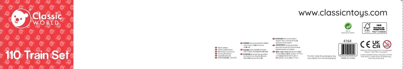 This huge set from Classic World. This 110-piece wooden train set is a great gift for any child who enjoys playing with vehicles and models.