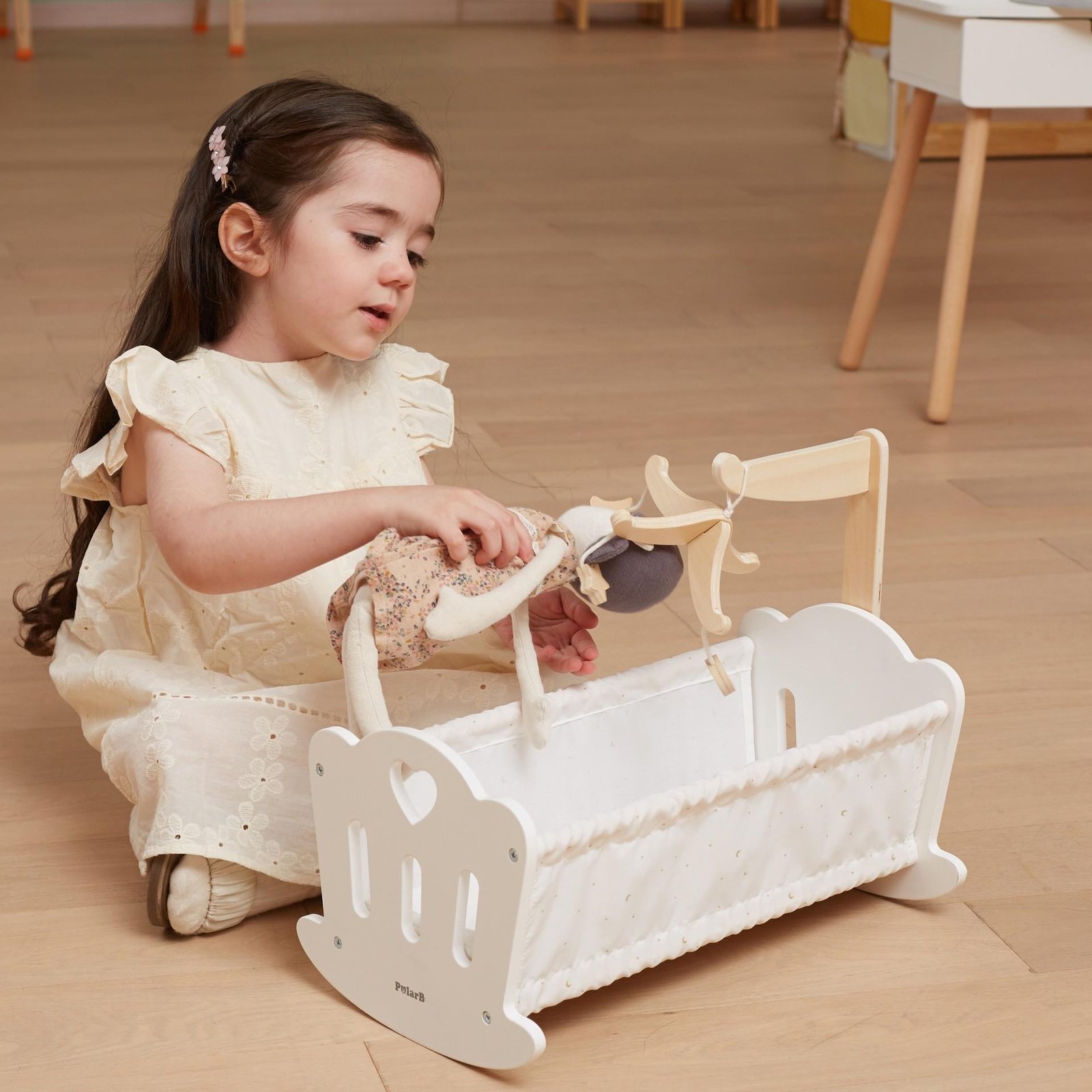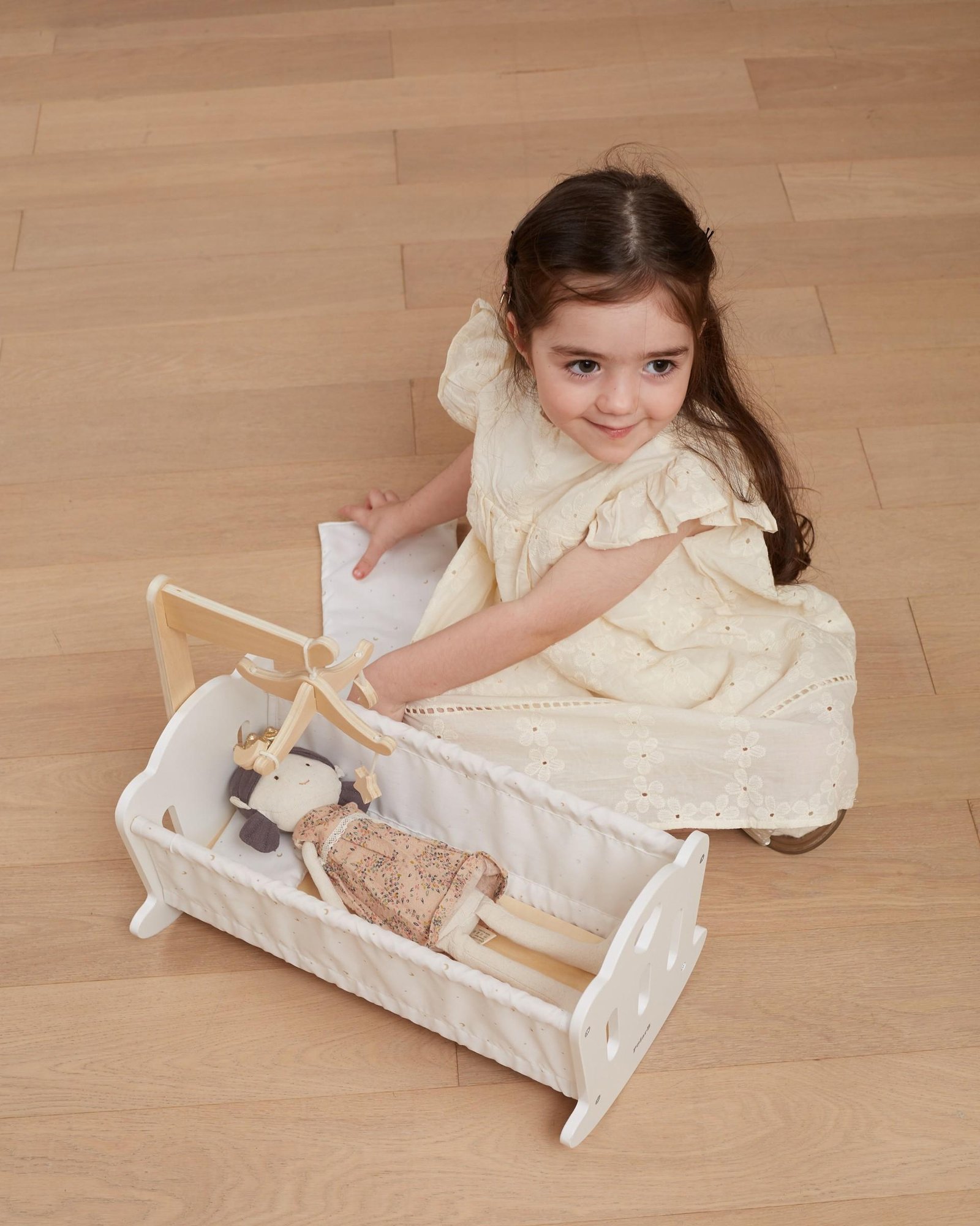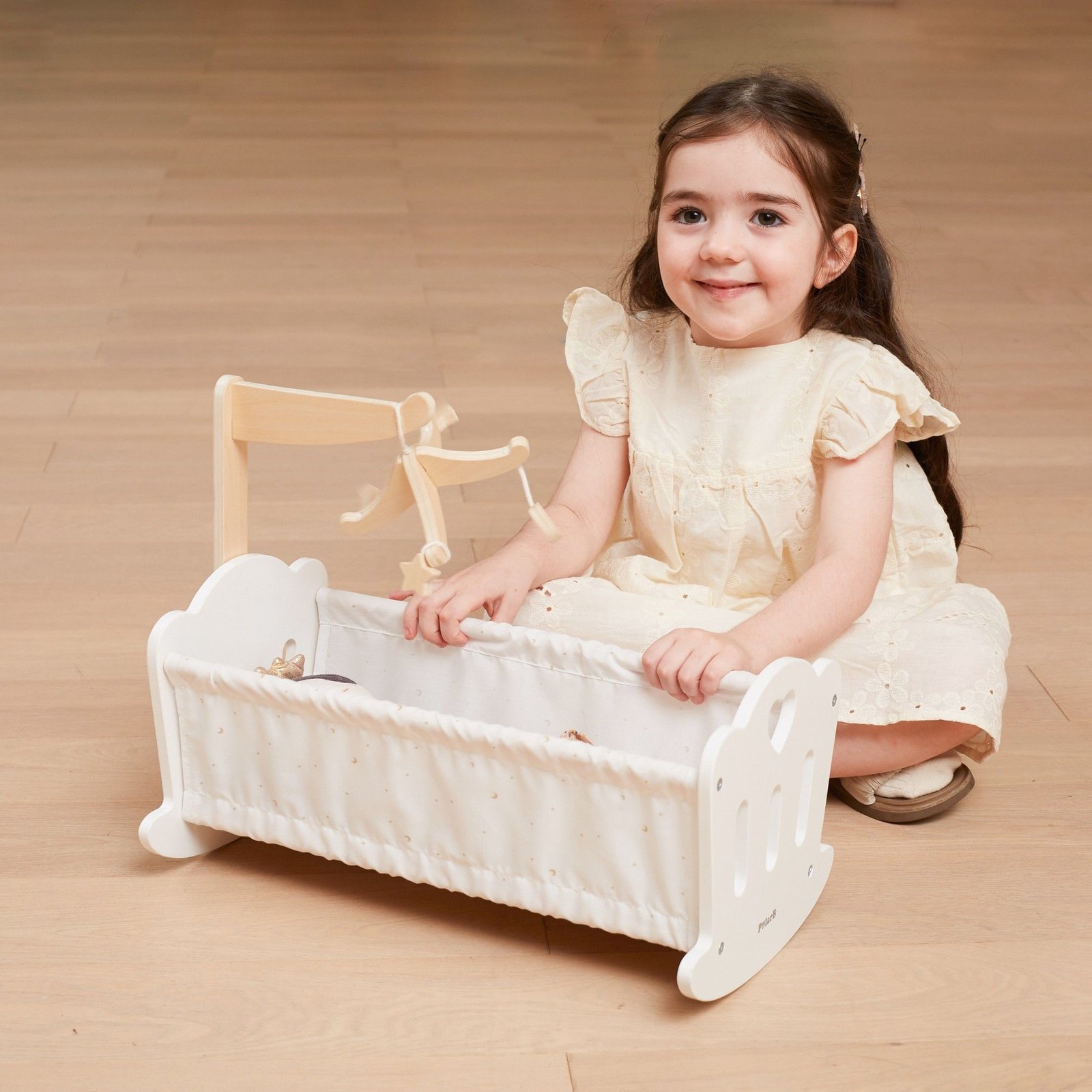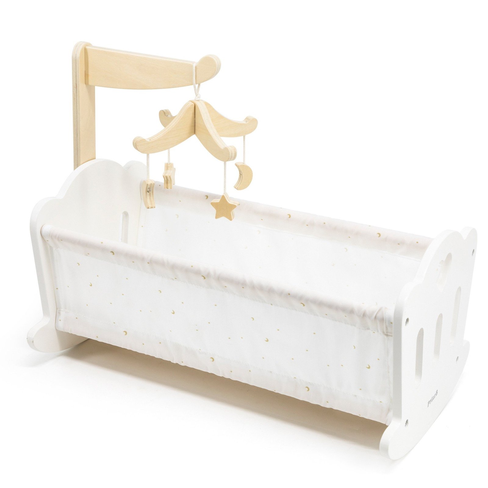 Lopšys turi minkštą medvilninę pagalvėlę ir antklodę su mielu žvaigždžių ir mėnulio raštu, taip pat žavingą lopšio mobiliąją dalį. Jis tinka lėlėms, kurių aukštis iki 38 cm.