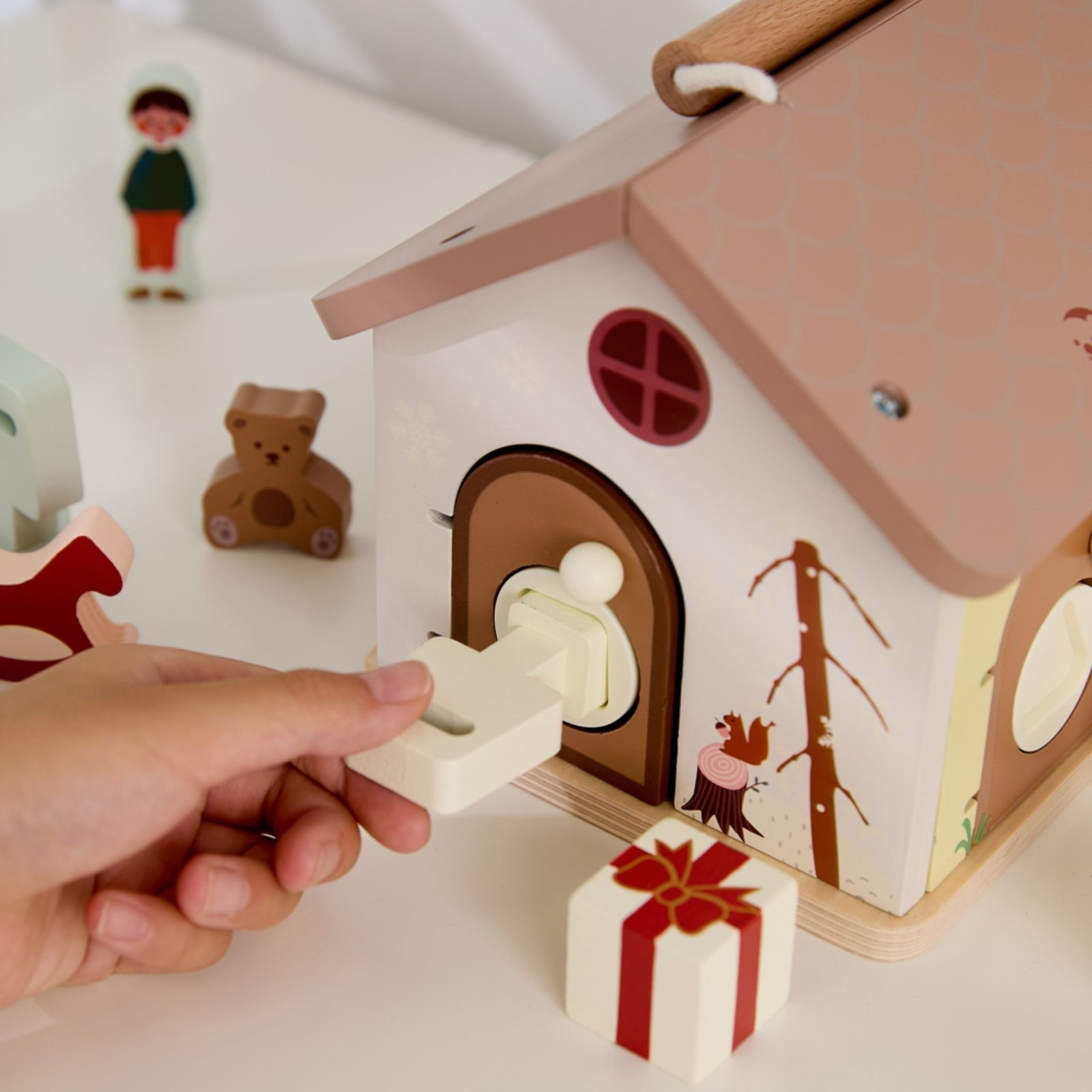 Medinis Edukacinis Namas su Užraktais yra sensorinis žaislas, kuris skatina jaudinančią atradimų patirtį jūsų mažyliui! Šiduje spalvingi blokai su linksmais piešiniais laukia tyrinėtojo, vaizduojantys, be kita ko, mažą meškiuką ir gimtadienio dovaną, puikiai atitinkančius žaislo temą. Kiekvienų durų atidarymas ir uždarymas yra puikus būdas lavinti smulkiosios motorikos įgūdžius, vikrumą ir loginį mąstymą. Pagamintas iš patvarios, saugios medienos, žaislas sukurtas įkvėpti atradimo ir vaizduotės džiaugsmą.