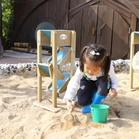 Žaislas susideda iš viršuje esančio kūgio, į kurį vaikas pilsto smėlį, ir trijų mažų nusileidimo takų, per kuriuos smėlis leidžiasi žemyn.