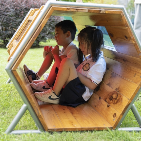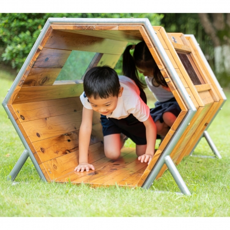 Medinis tunelis su langais – tai spalvinga, šešiakampė konstrukcija, skirta aktyvioms ir kūrybingoms vaikų pramogoms. Tunelis su langeliais įleidžia natūralią šviesą ir kviečia vaikus tyrinėti, slėptis, žaisti ir bendrauti.