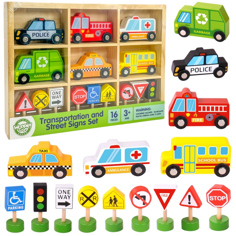Medinių automobilių ir kelio ženklų rinkinys 53521