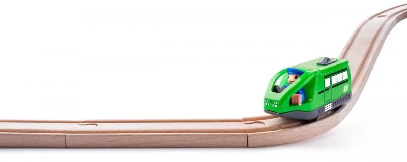 Elektrinis traukinys su atbuline pavara. Figūrėlę galima įdėti atidarius priekinį dangtelį.