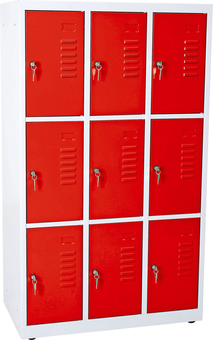 Metalinė spintelė su 9 rakinamais skyreliais | įvairių spalvų