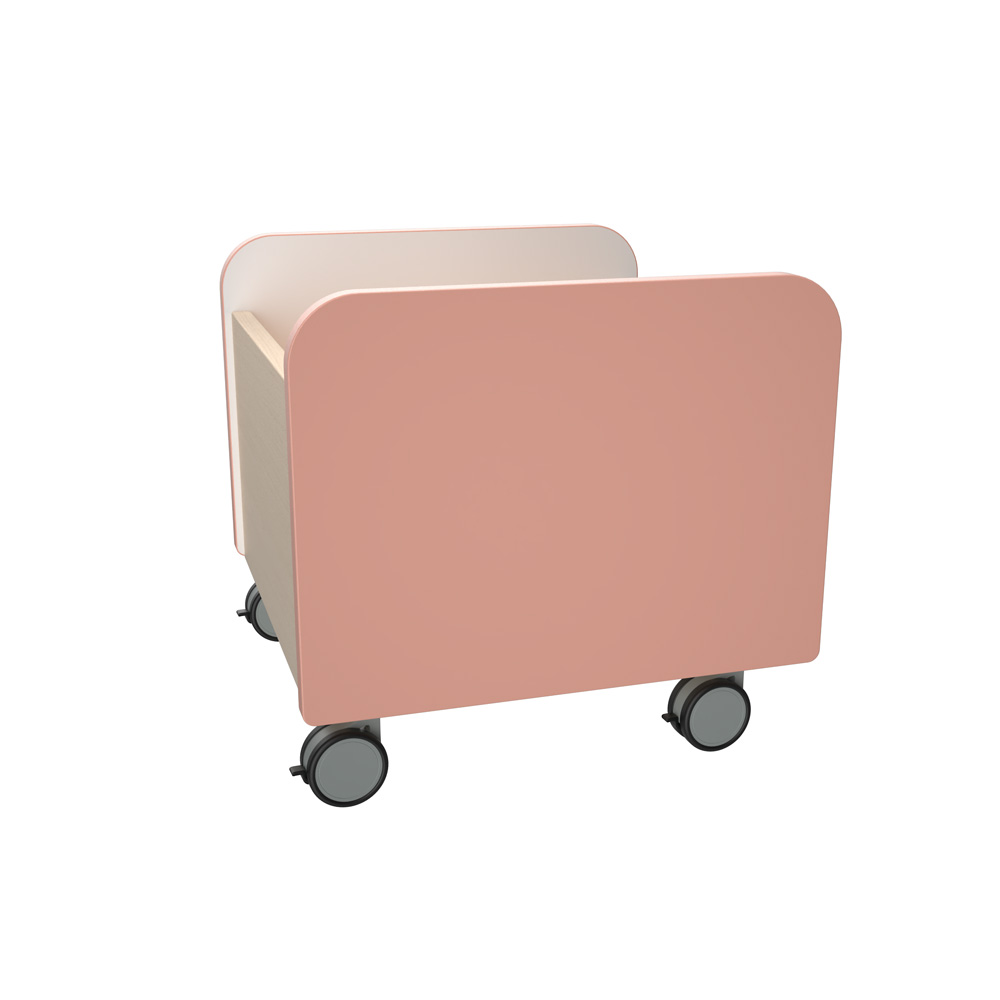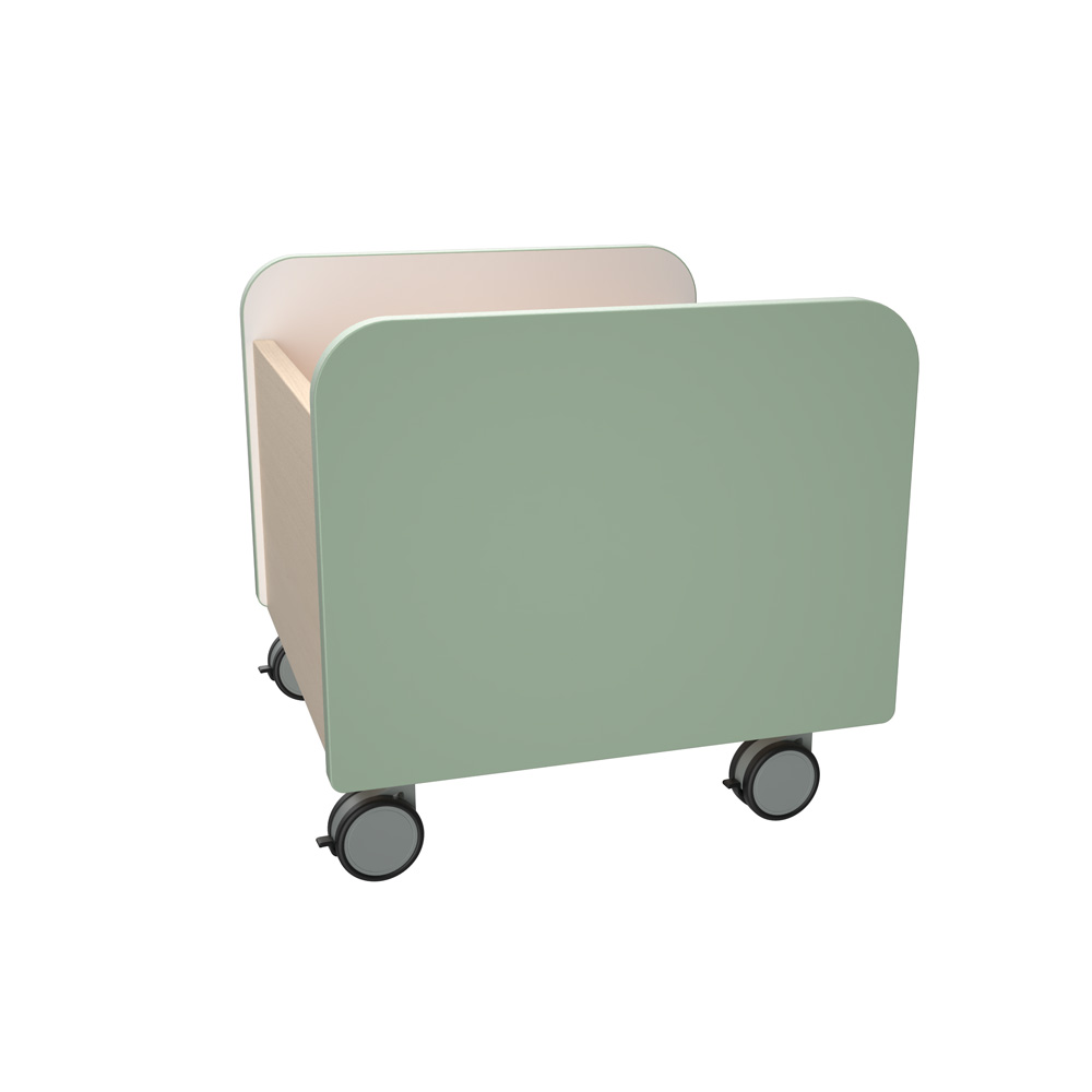 Funkcionalūs, mobilūs žaislų, knygų, mokomųjų priemonių ir kt. laikymo konteineriai. Pagaminti iš 18 mm storio laminuotos plokštės, klevo arba baltų atspalvių, ir 18 mm storio MDF plokštės, padengtos patvaria termoplastine fanera.