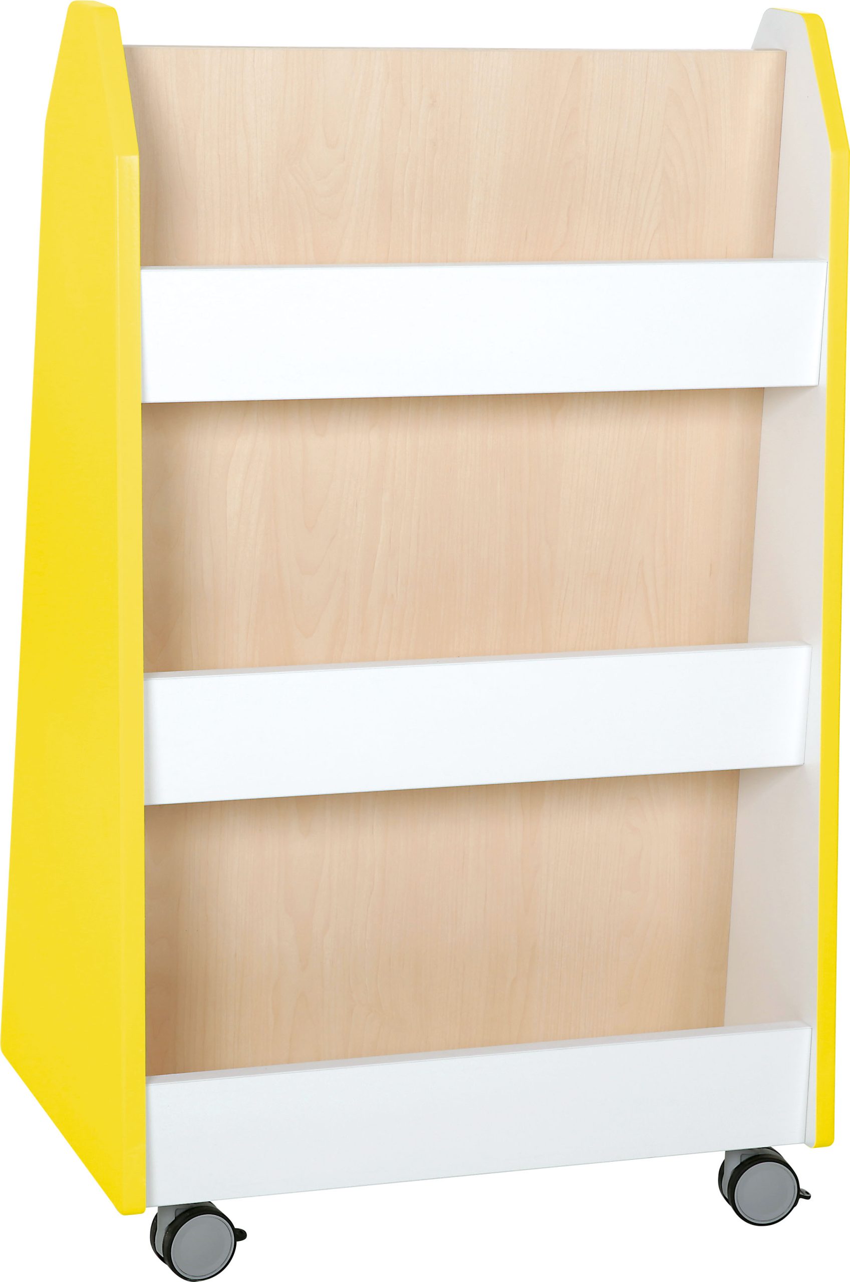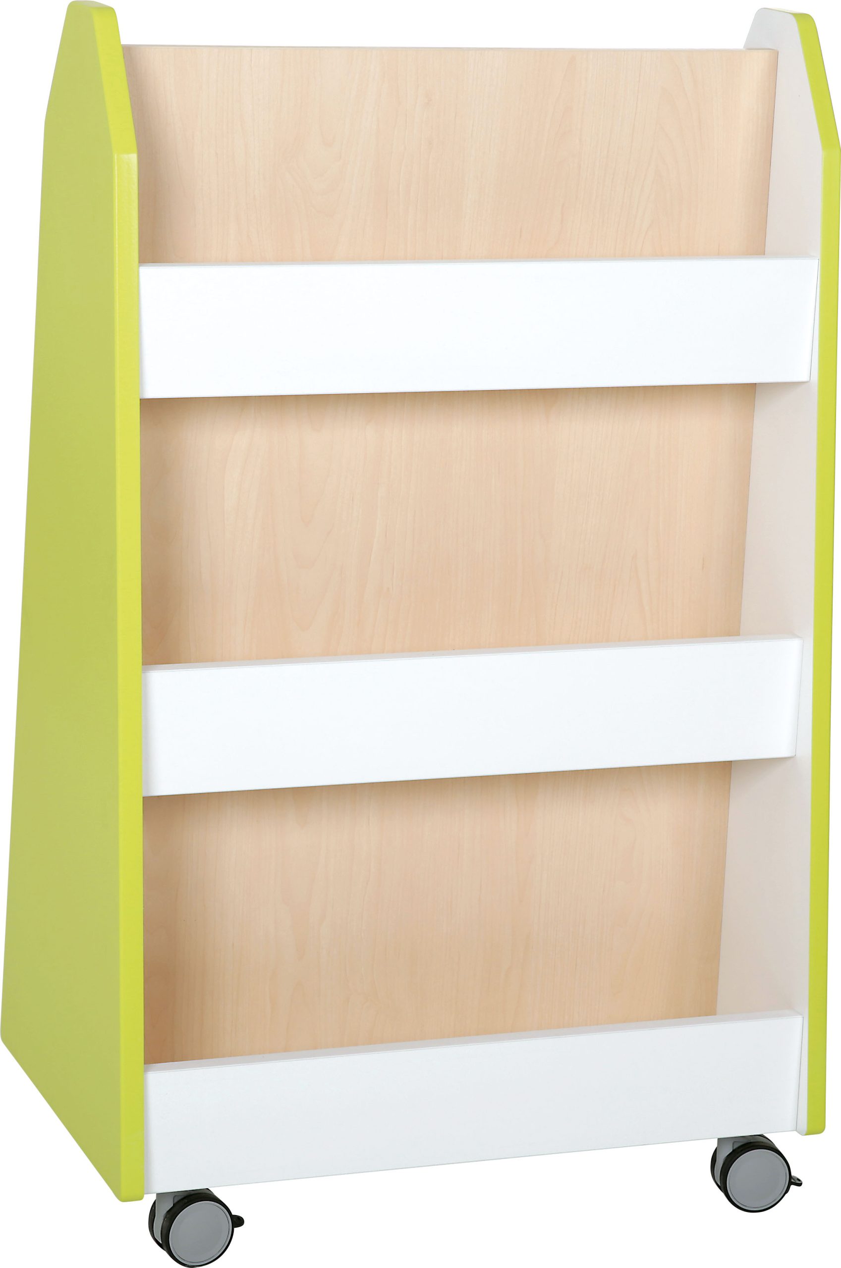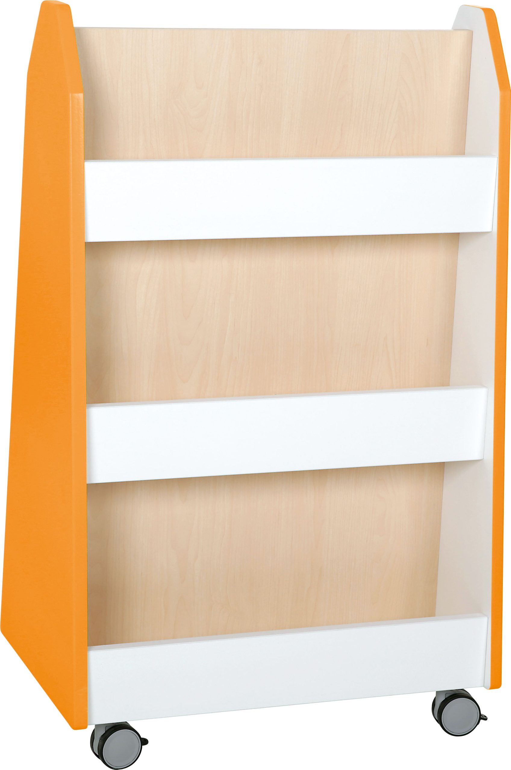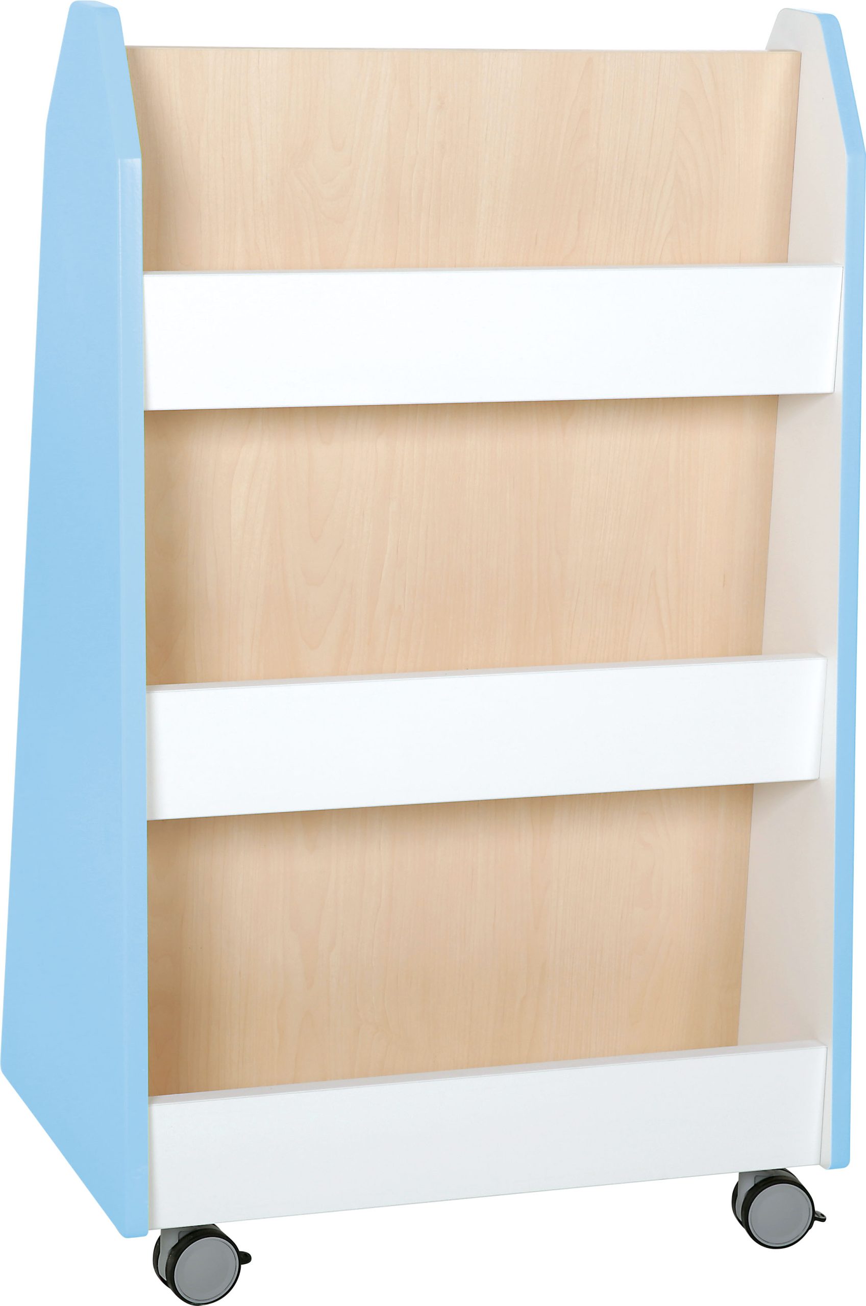 Mobili dvipusė knygų spinta, skirta knygoms eksponuoti taip, kad matytųsi jų viršeliai.