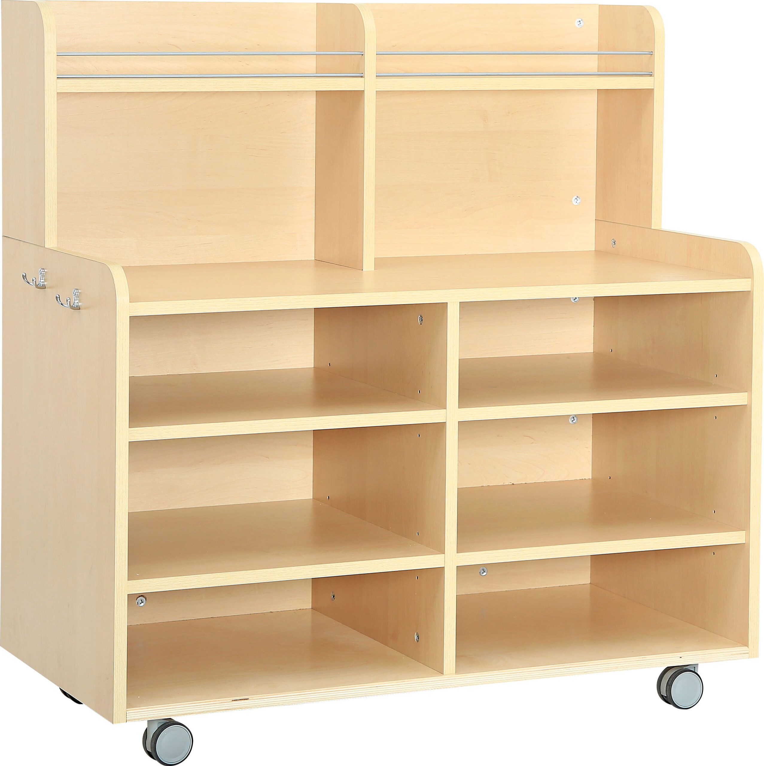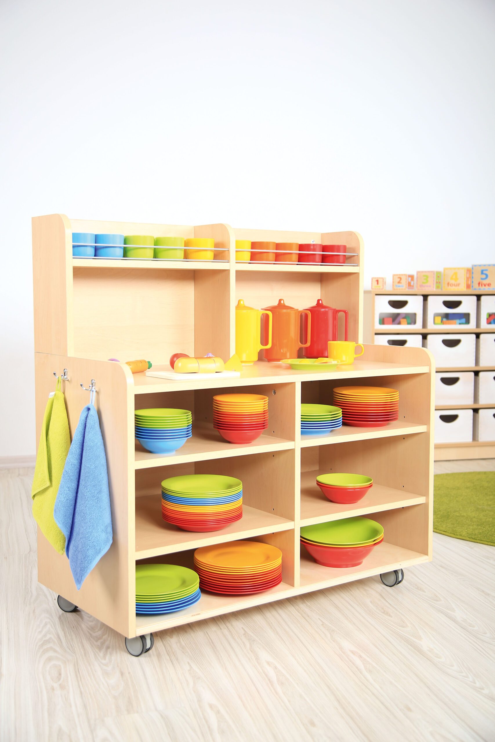 Talpus ir praktiškas baldas su ratukais, skirtas indų laikymui. Turi stabdžius priekyje, šoninį laikiklį stumdymui ir du kabliukus šluostėms. Pagamintas iš laminuotos plokštės, apatinė dalis – iš faneros.