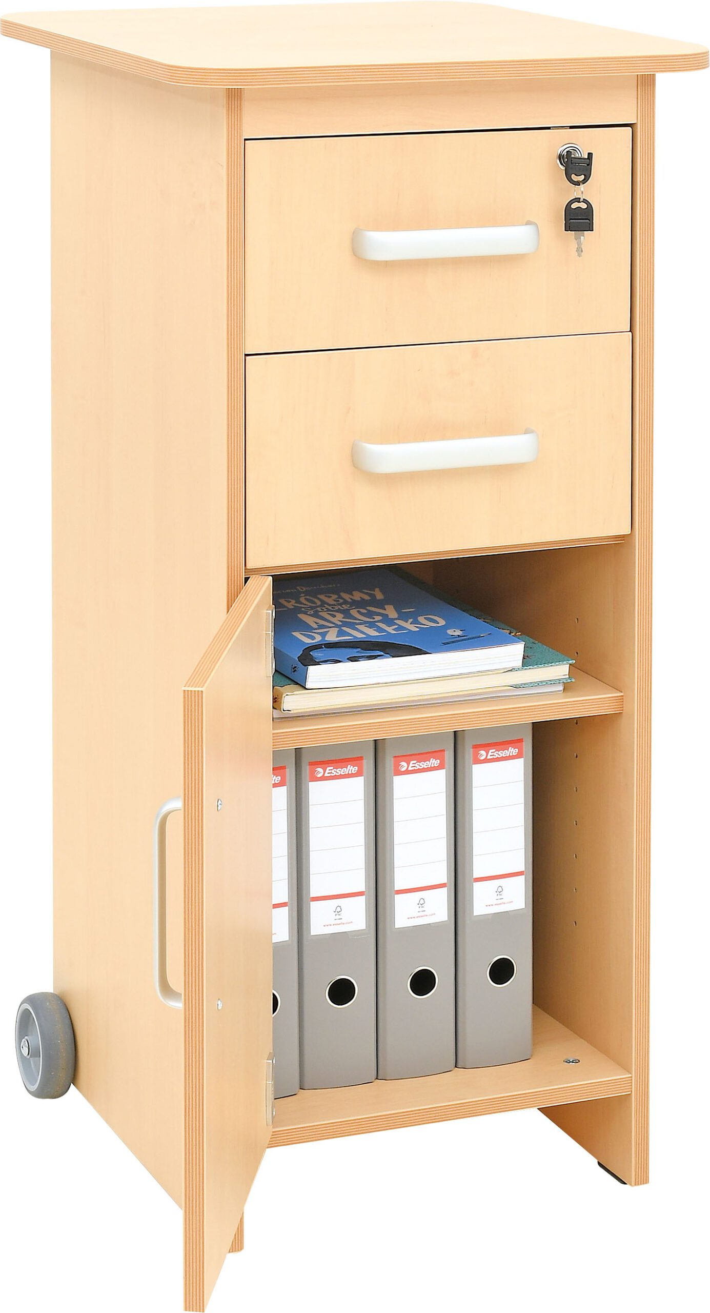 – 2 stalčiai, vidinis matm. 30 x 31 x 12 cm, viršutinis su užraktu