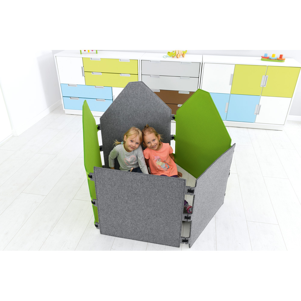 Dekoratyvinė namo formos triukšmo užtvara, pagaminta iš 0,8 cm storio veltinio. Leidžia iš dalies atskirti patalpos erdvę (pavyzdžiui, darbo ar žaidimų stotelę ar asmeninę erdvę vaikučiams). Ypač tinka vaikų lopšeliams ir darželiams.