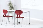 Mobilūs stalai ant stabilaus, suvirinto rėmo, pagaminto iš 32 mm storio apvalaus profilio. Stalviršiai pagaminti iš 18 mm storio laminuotos plokštės su užapvalintais kampais. Įrengti 2 ratukai su stabdžiais.