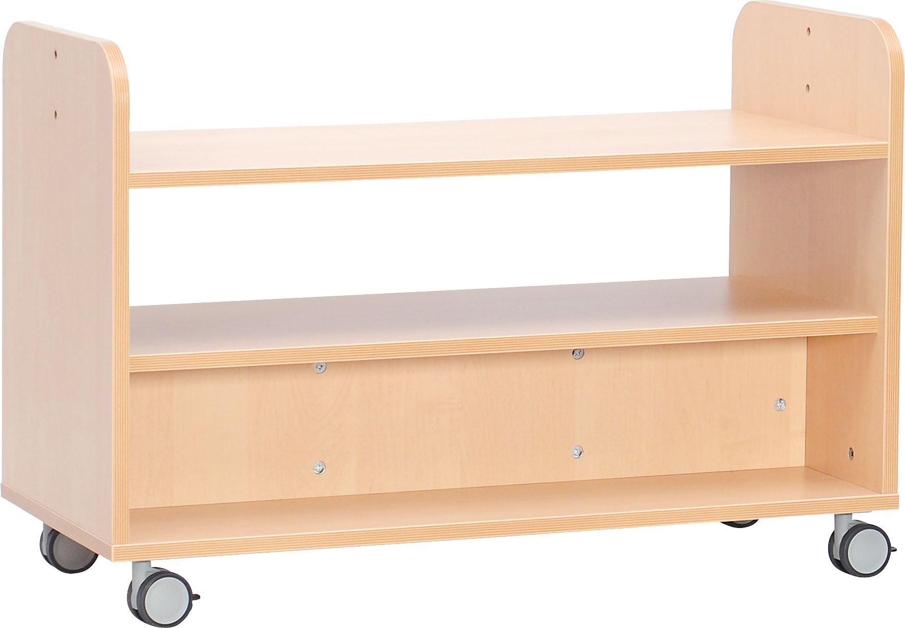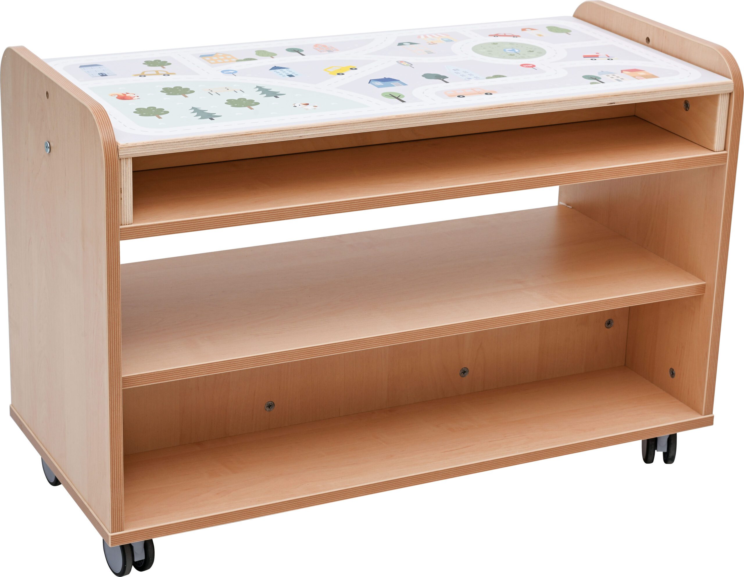 Staliukas su ratukais. Pagaminta iš 18 mm storio laminuotos beržo spalvos plokštės su ABS daugiasluoksnėmis briaunomis.