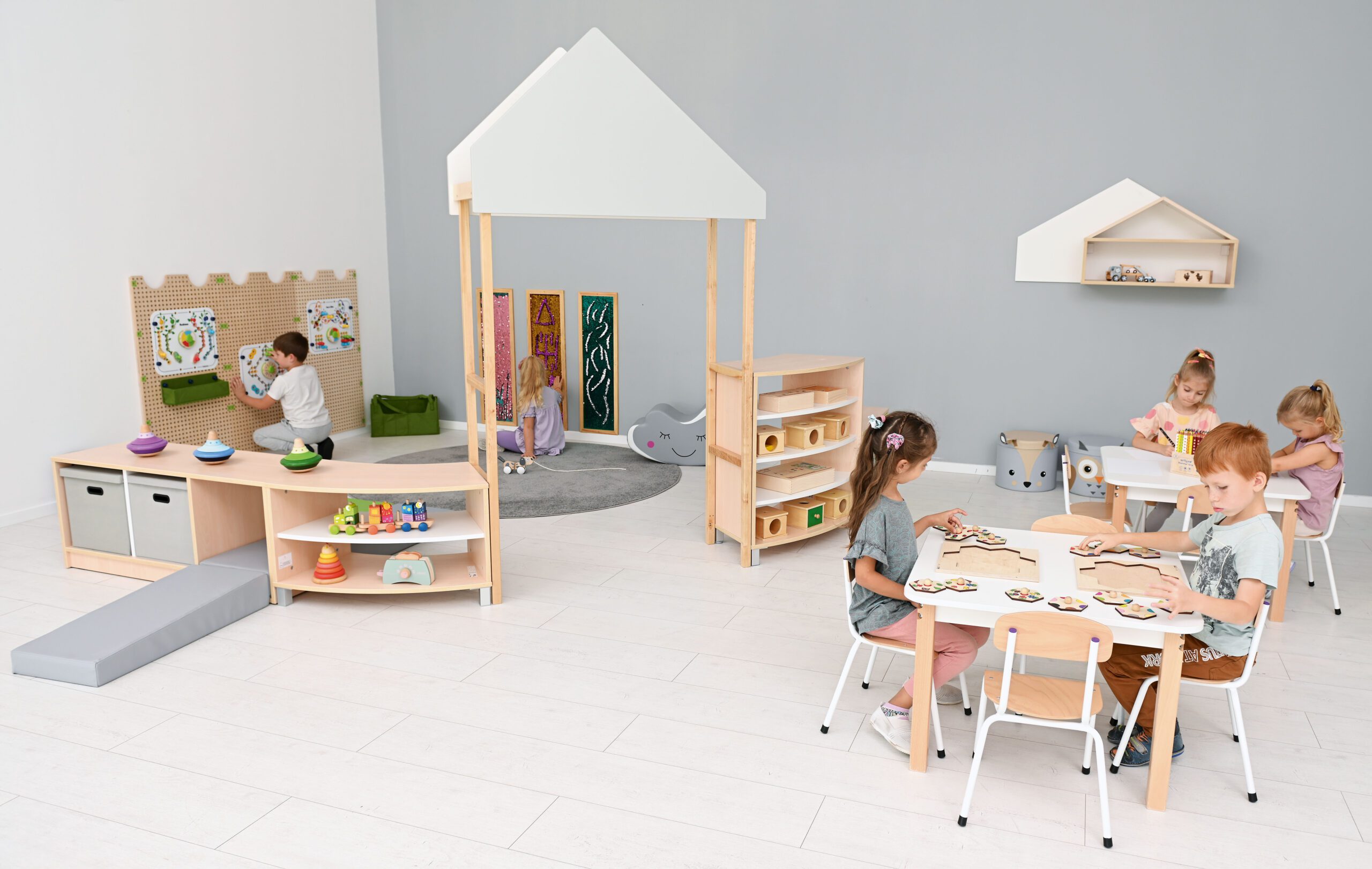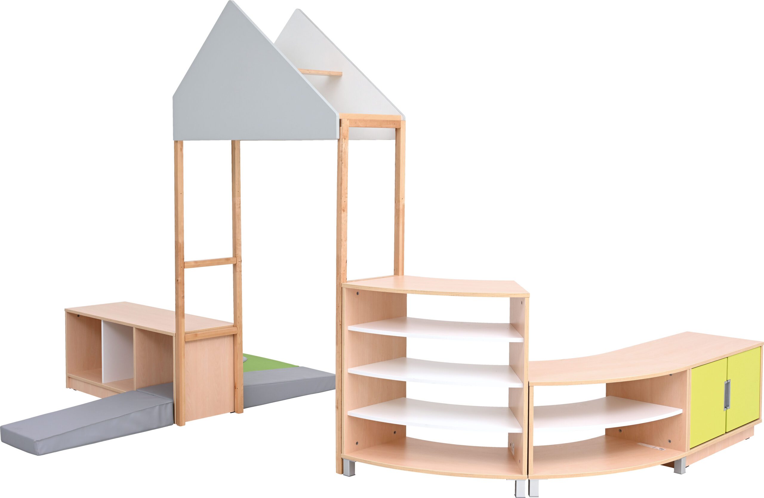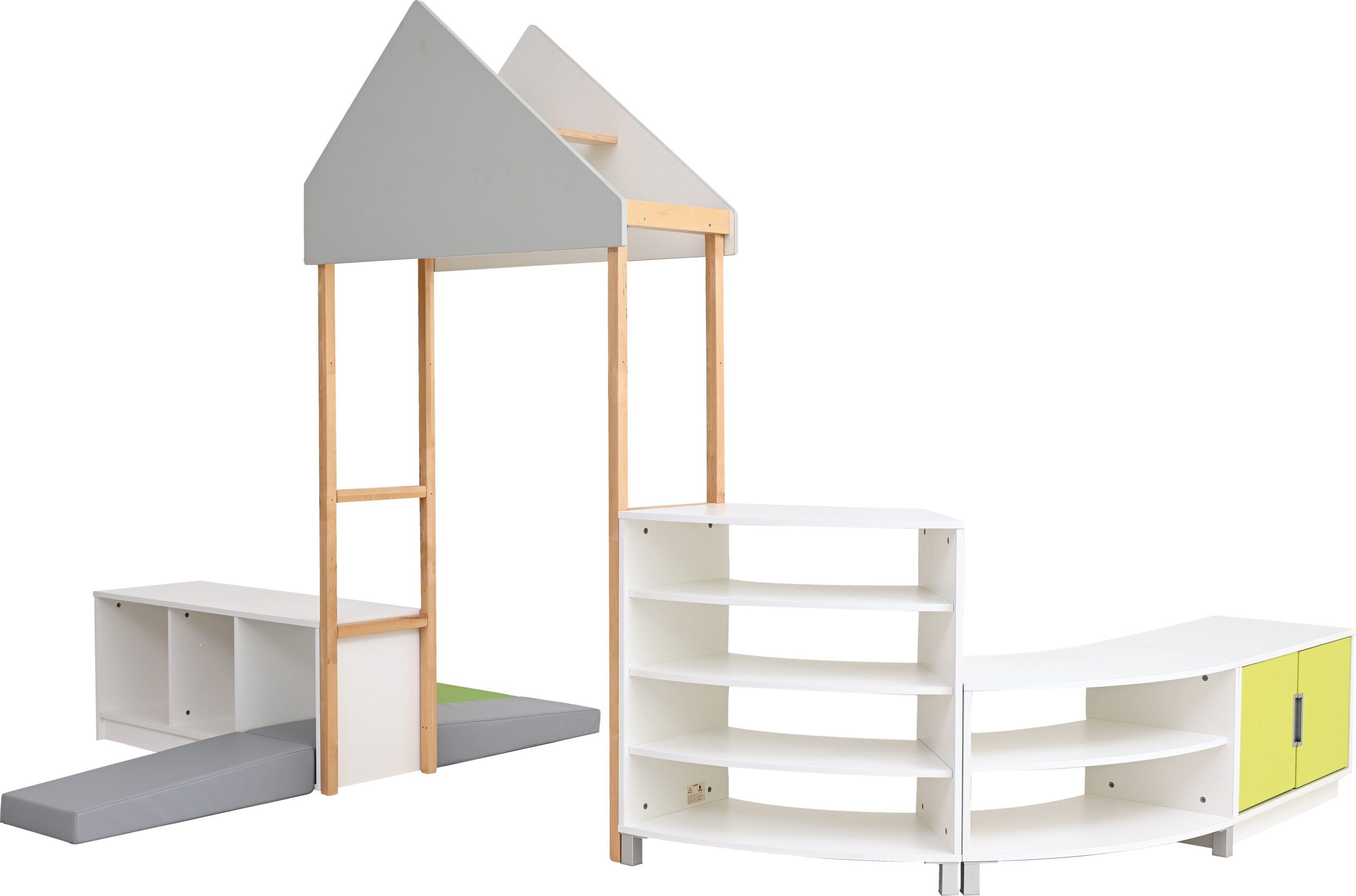 Modulinis „Quadro“ baldų komplektas – tai funkcionalus ir estetiškas sprendimas vaikų žaidimų ar poilsio zonoms. Galima rinktis iš dviejų spalvų – šviesaus klevo arba baltos spalvos. Baldai pagaminti iš patvarios 18 mm laminuotos plokštės, o fasadai padengti atsparia termoplastine danga.