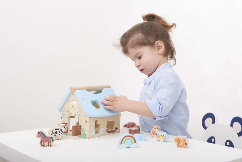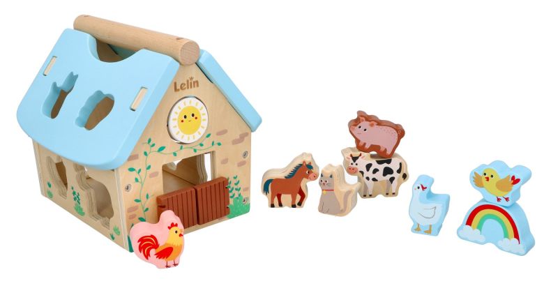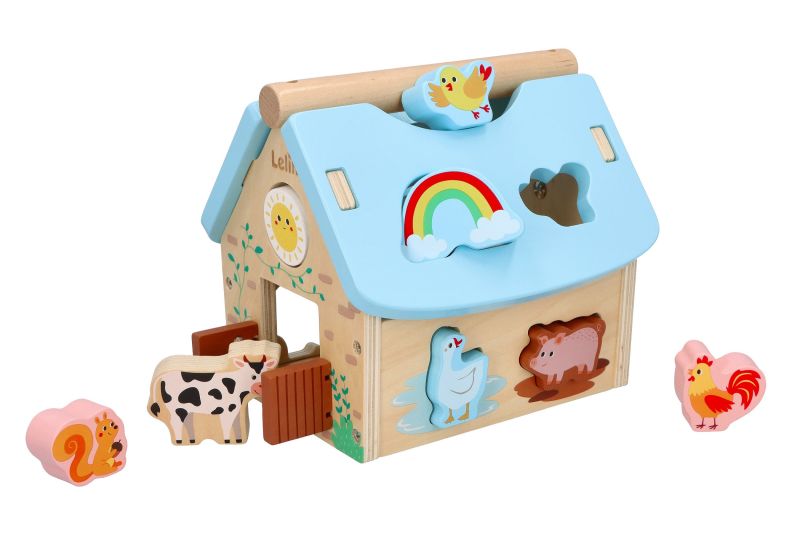 Šiame geriausiame formų rūšiuotuve yra 8 fermos gyvūnai ir vaivorykštinės, ryškiaspalvės formos, kurios, krisdamos į fermos namelį, skleidžia malonų "trinktelėjimą". Tada atidarykite dangtį, išimkite stogo plokštes arba atidarykite fermos duris ir pradėkite viską iš naujo! Klasikinis lavinamasis žaislas mažyliams – fermos formos namelis.