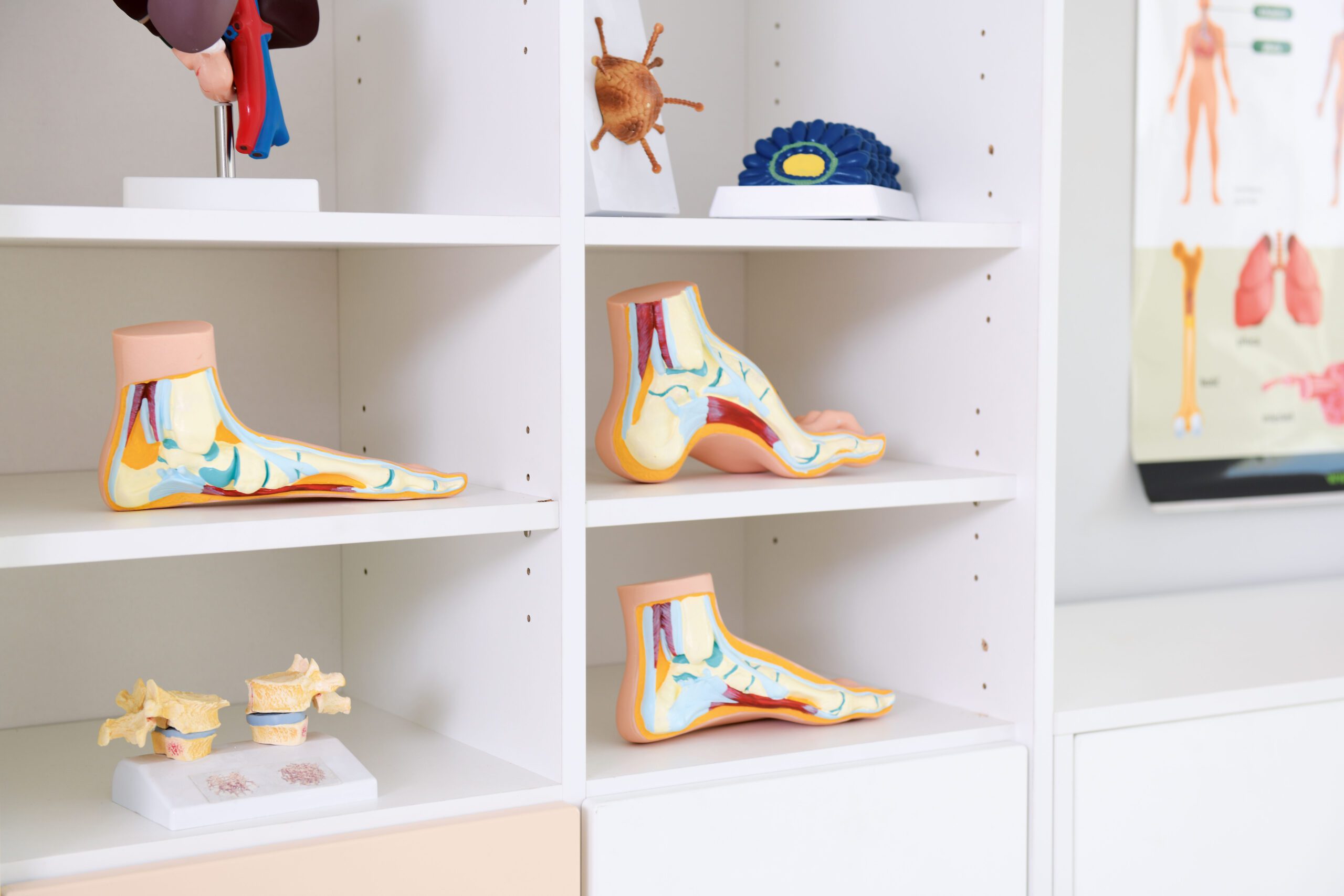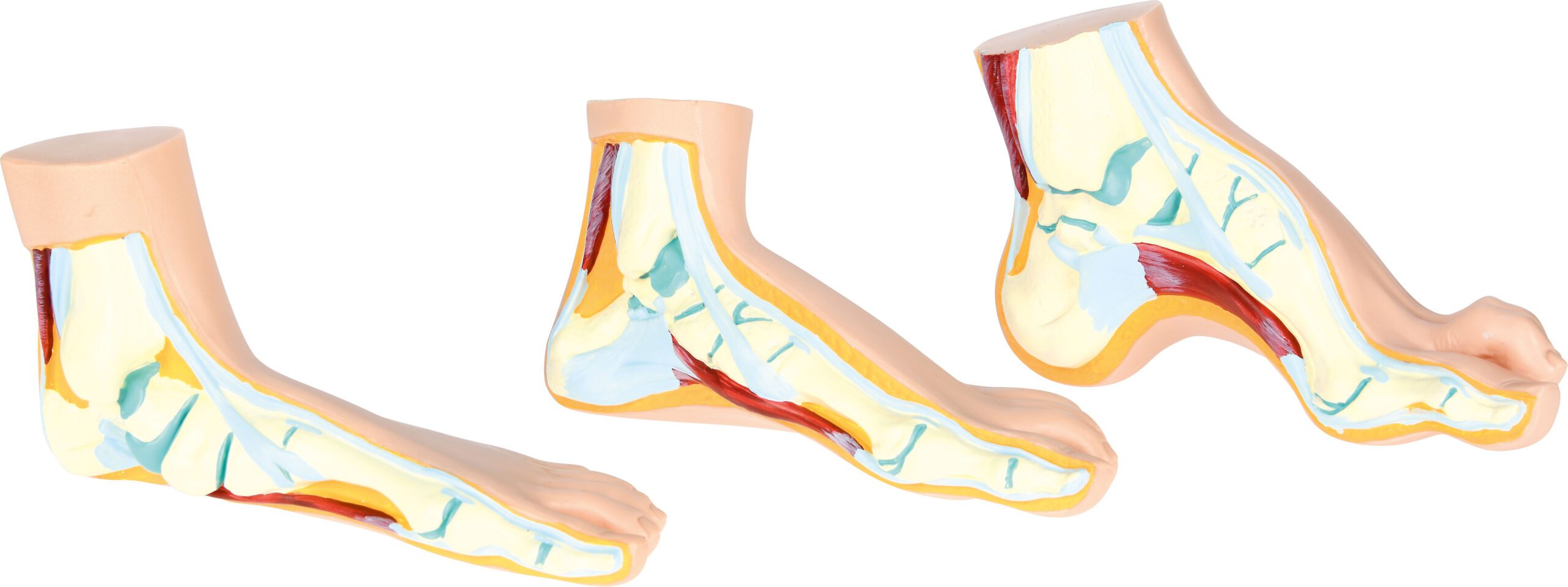 Modelis vaizduoja pėdos išorines struktūras, o vidinėje pusėje – kaulus, raumenis ir raiščius teisingose arba neteisingose anatomijos pozicijose. Rinkinyje yra normali, išgaubtą ir plokščią pėda.