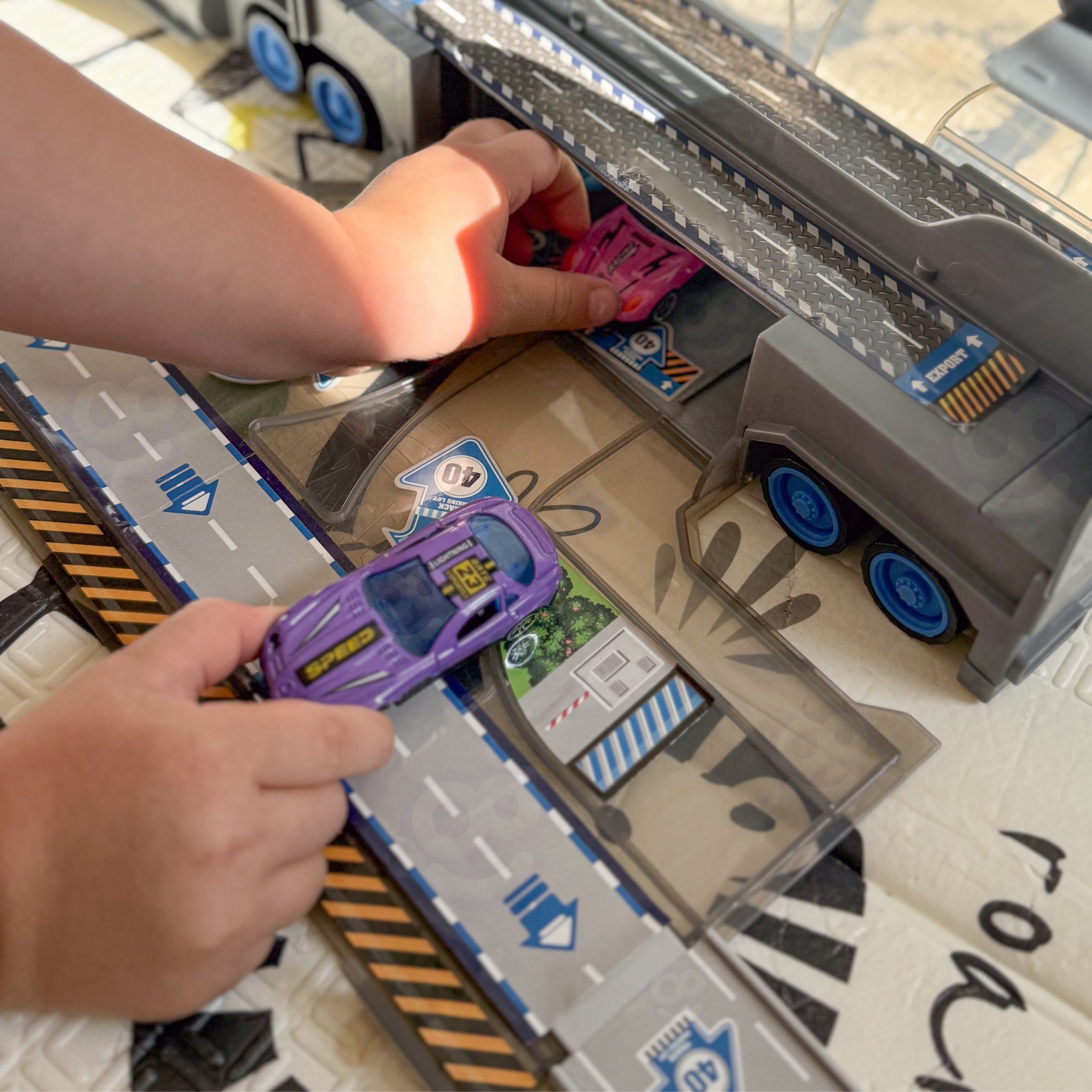 Policijos sunkvežimio rinkinys yra daugiafunkcinis žaislas iš Woopie prekės ženklo. Jis gali būti paverstas klasikiniu transporto sunkvežimiu vienu momentu, o išskleidus, jis virsta plačia lenktynių trasa su paleidimo įrenginiu. Rinkinio centrinė dalis yra didelis, įspūdingas sunkvežimis, stiliaus pagal policijos transporto priemonę, kuris tarnauja kaip transporto priemonė ir nešiojamas krepšys automobiliams ir priedams. Atidarius priekabą ir išskleidus komponentus, vartotojas gauna prieigą prie garažo ir lenktynių trasos, kur galima organizuoti jaudinančias lenktynes ir automobilių mūšius.
