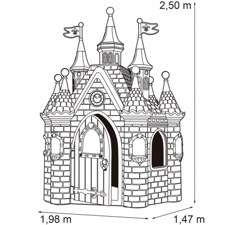 Įspūdingi rūmai – puikus žaidimų namelis kiekvienai mažajai princesei! Rūmai turi net 9 bokštus, laikrodį, atidaromas duris su skambučiu, didelius langus ir detaliai dekoruotą vidų.