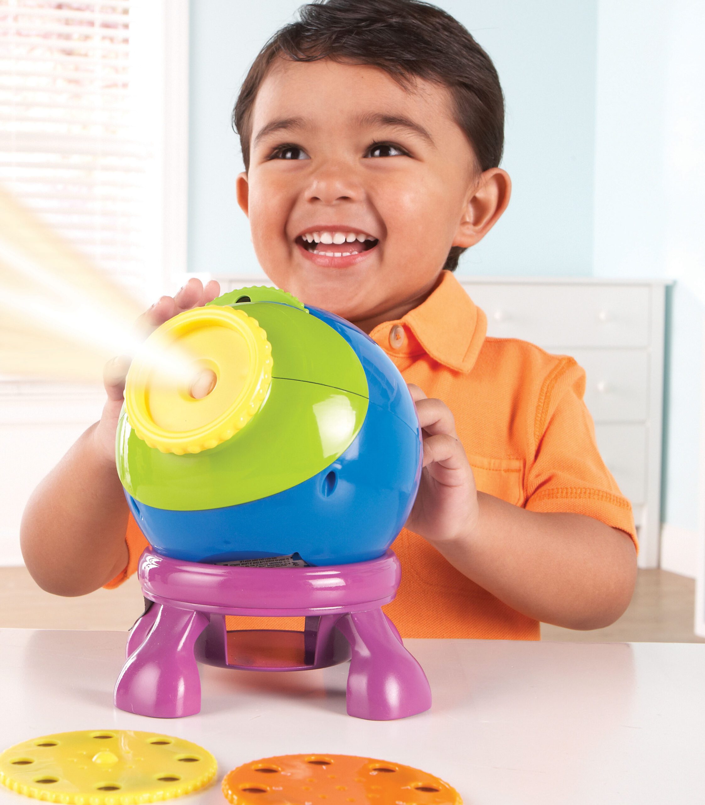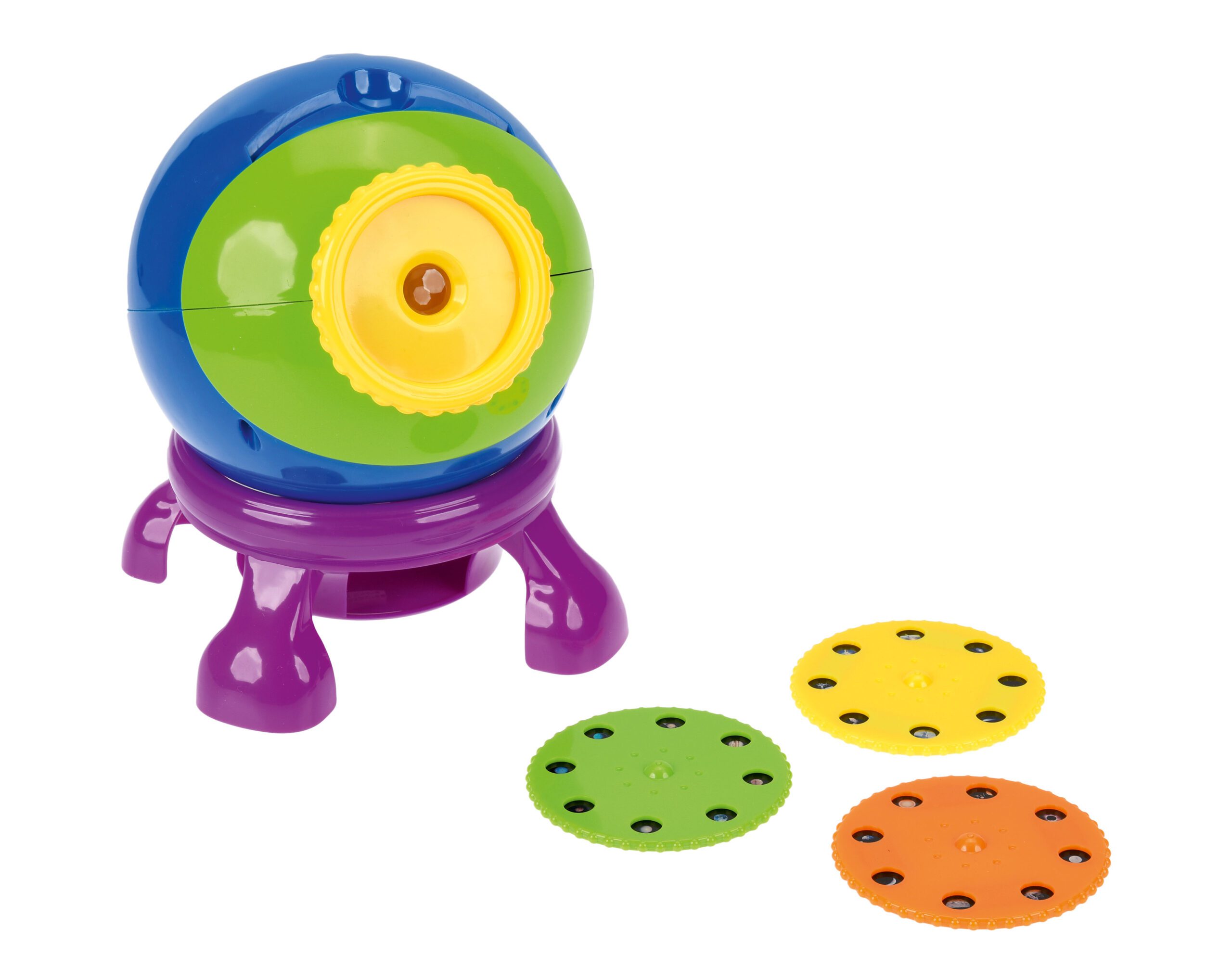 Lengvai valdomas projektorius supažindina vaikus su žvaigždėmis ir planetomis. Rinkinį sudaro 3 diskeliai po 8 vaizdus, tinka rodyti ant įvairių paviršių. Įrenginys turi patogią rankeną, stabilią bazę ir automatinio išsijungimo funkciją.