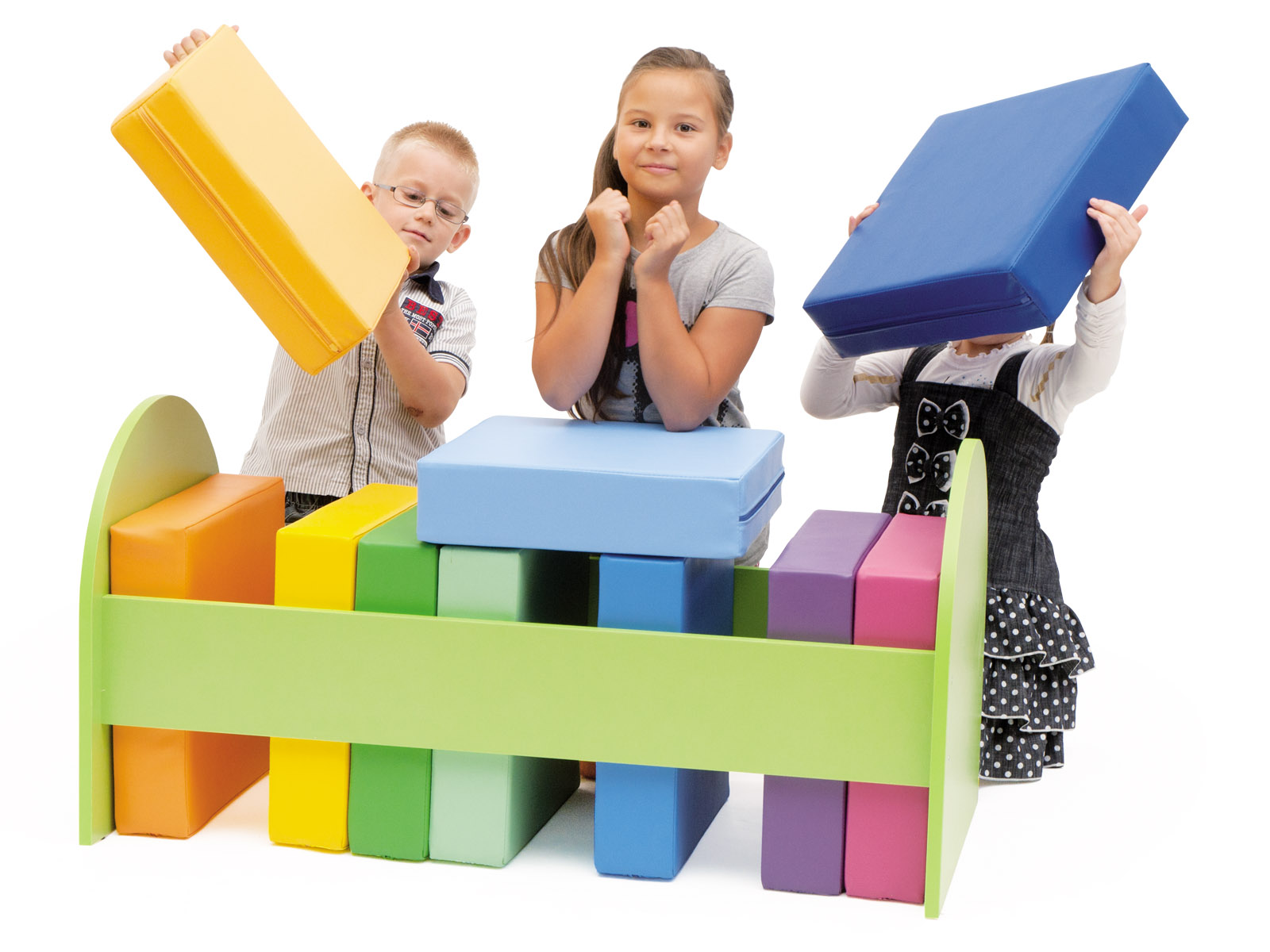 Pufų rinkinys „Vaivorykštė” su mediniu stovu 855626