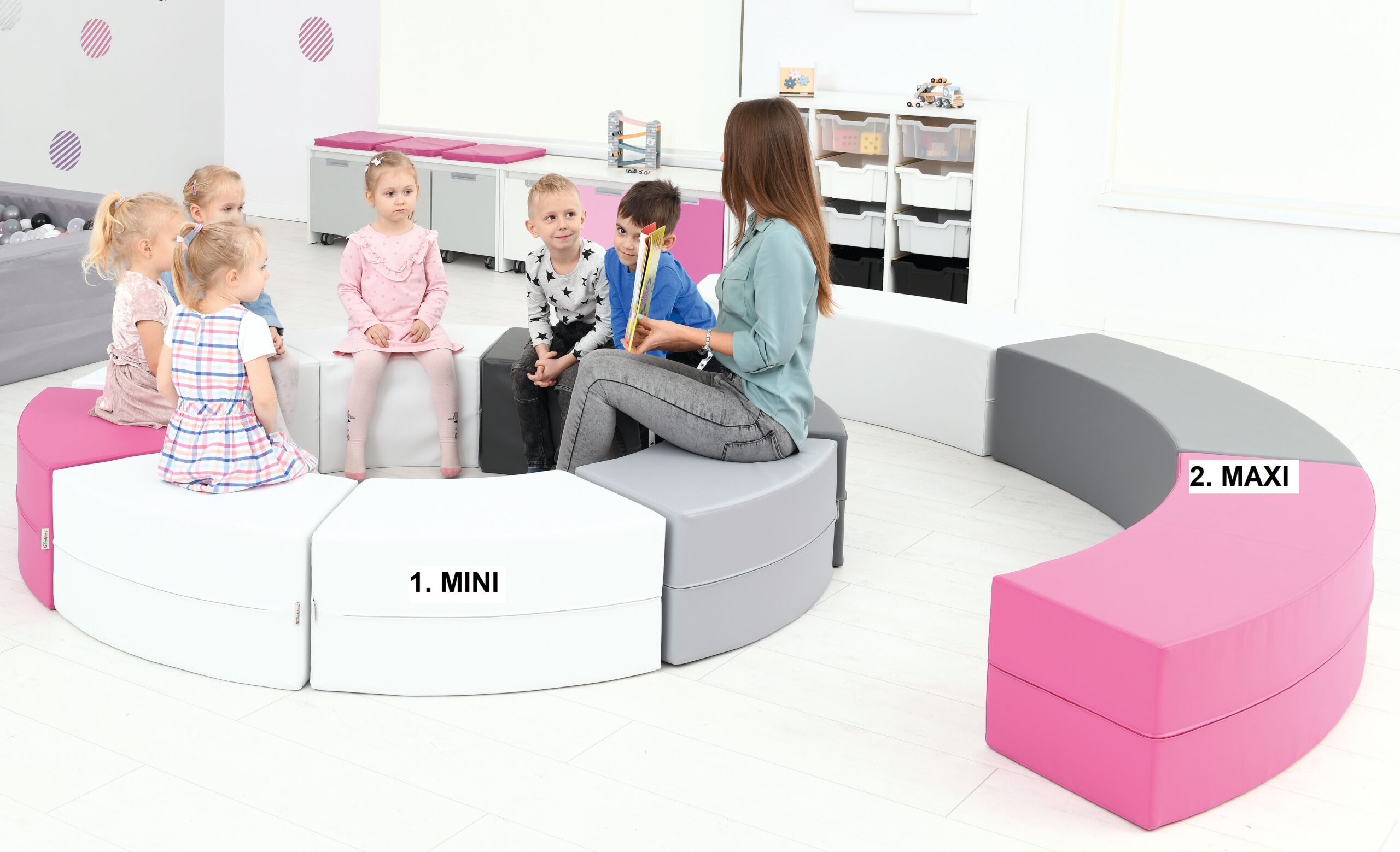 Pufai pagaminti iš putplasčio, aptraukti patvariu PVC audiniu, sudėtyje nėra ftalatų, juos lengva valyti. Idealiai tinka vaikų kampeliams darželyje ir mokykloje kurti.