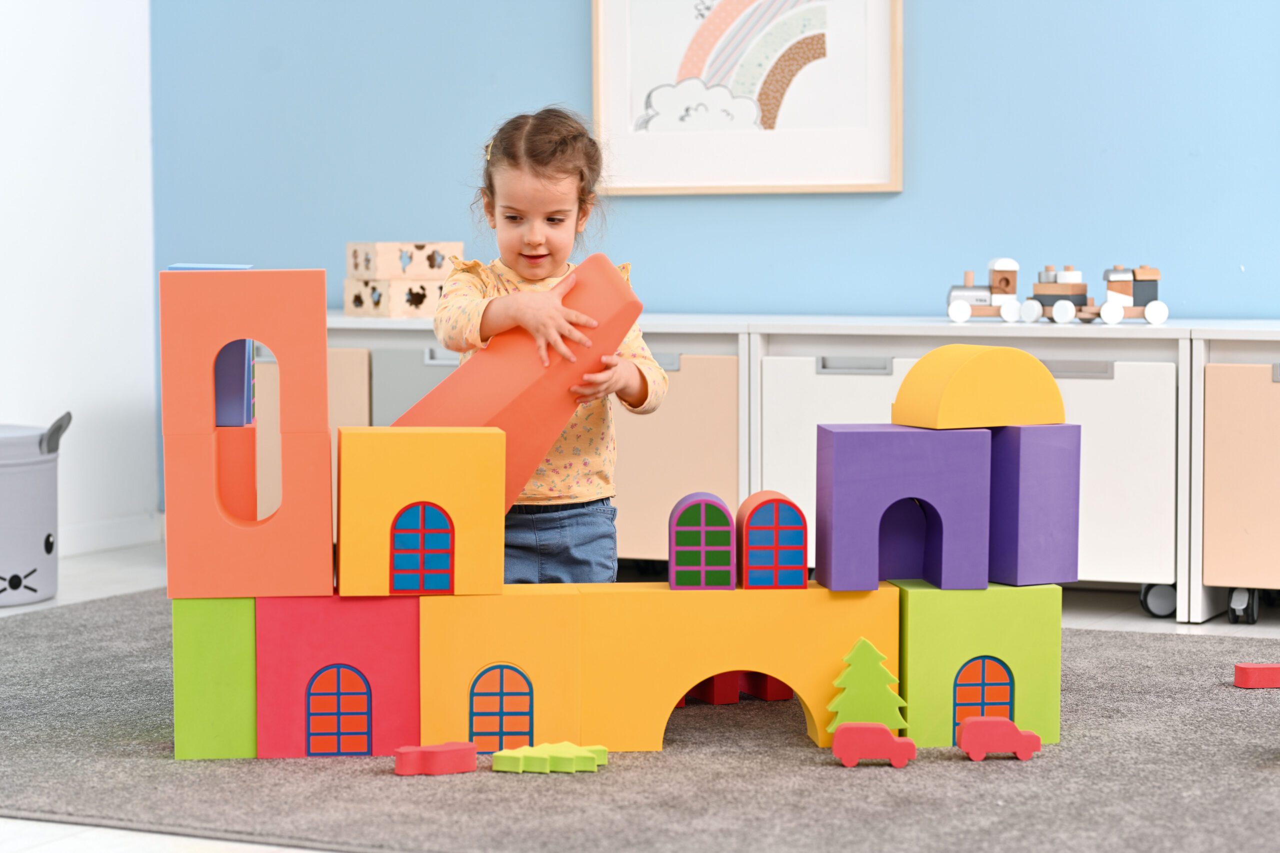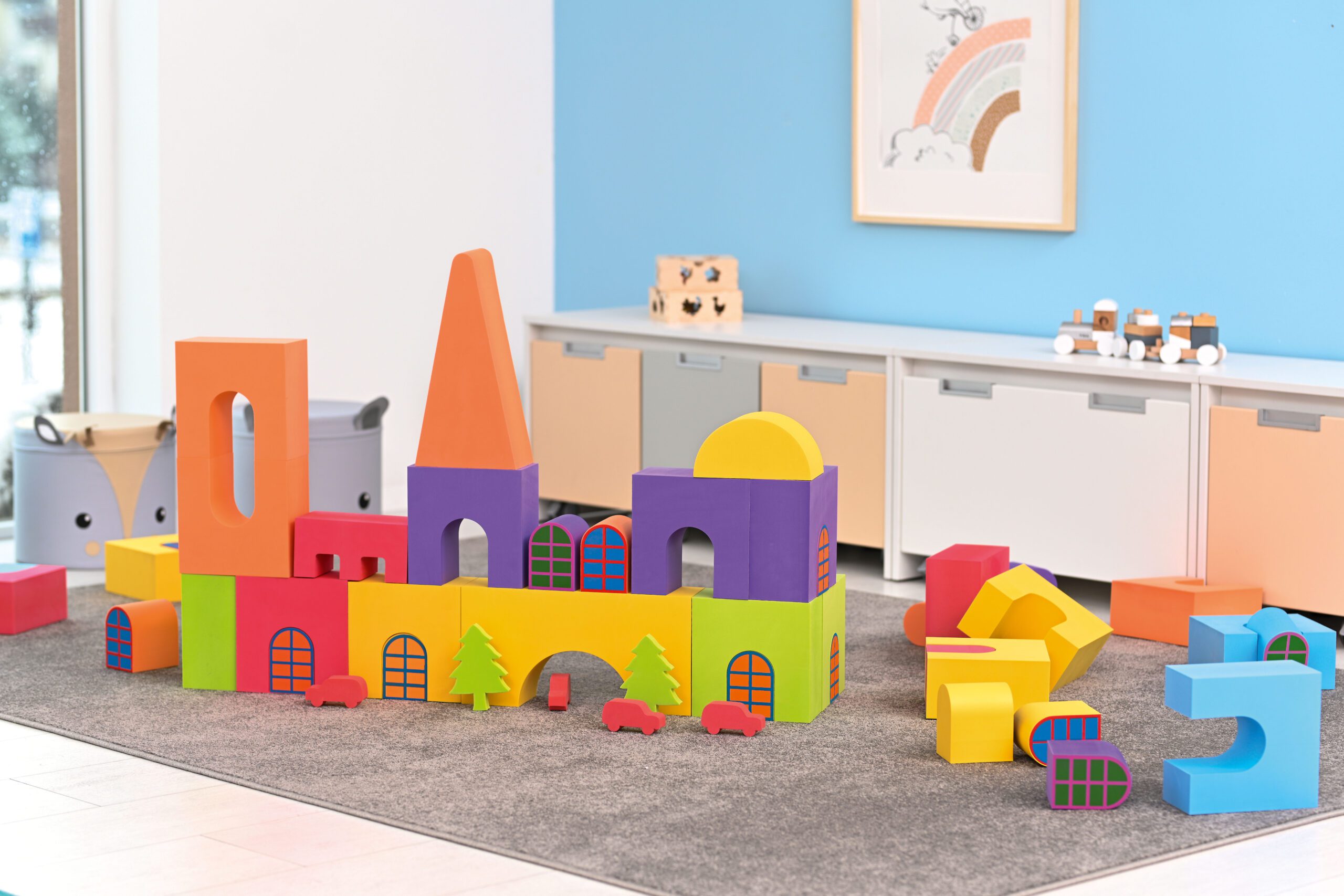 Blokai pagaminti iš EVA putų, ekologiškos medžiagos, kuri pasižymi lengvumu, ilgaamžiškumu ir atsparumu dilimui. Jie moko atpažinti formas, ugdo vaizduotę, motorinius įgūdžius ir regos bei motorikos koordinaciją. Prie blokų pritvirtinti jungiamieji elementai leidžia kurti tvirtas konstrukcijas.