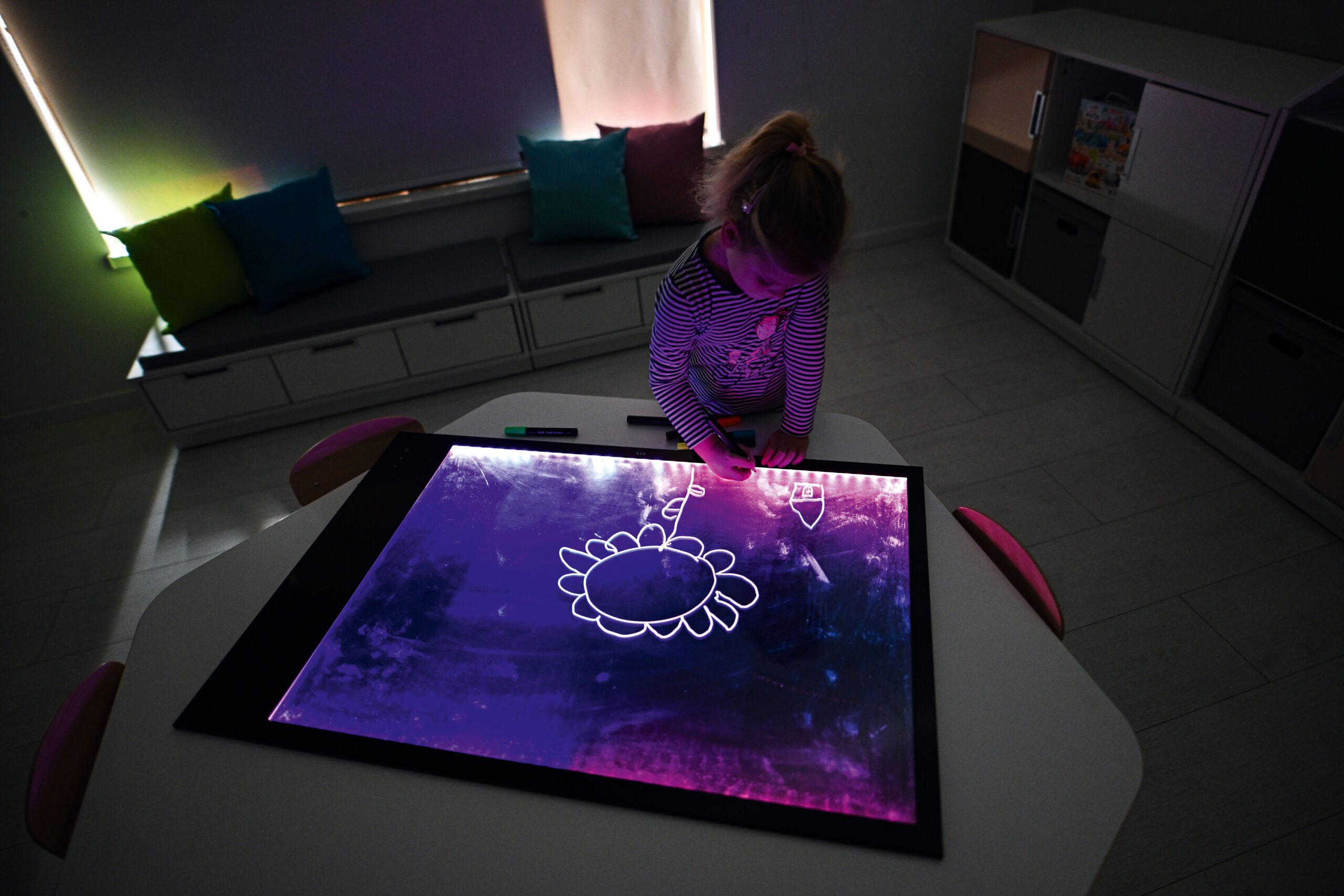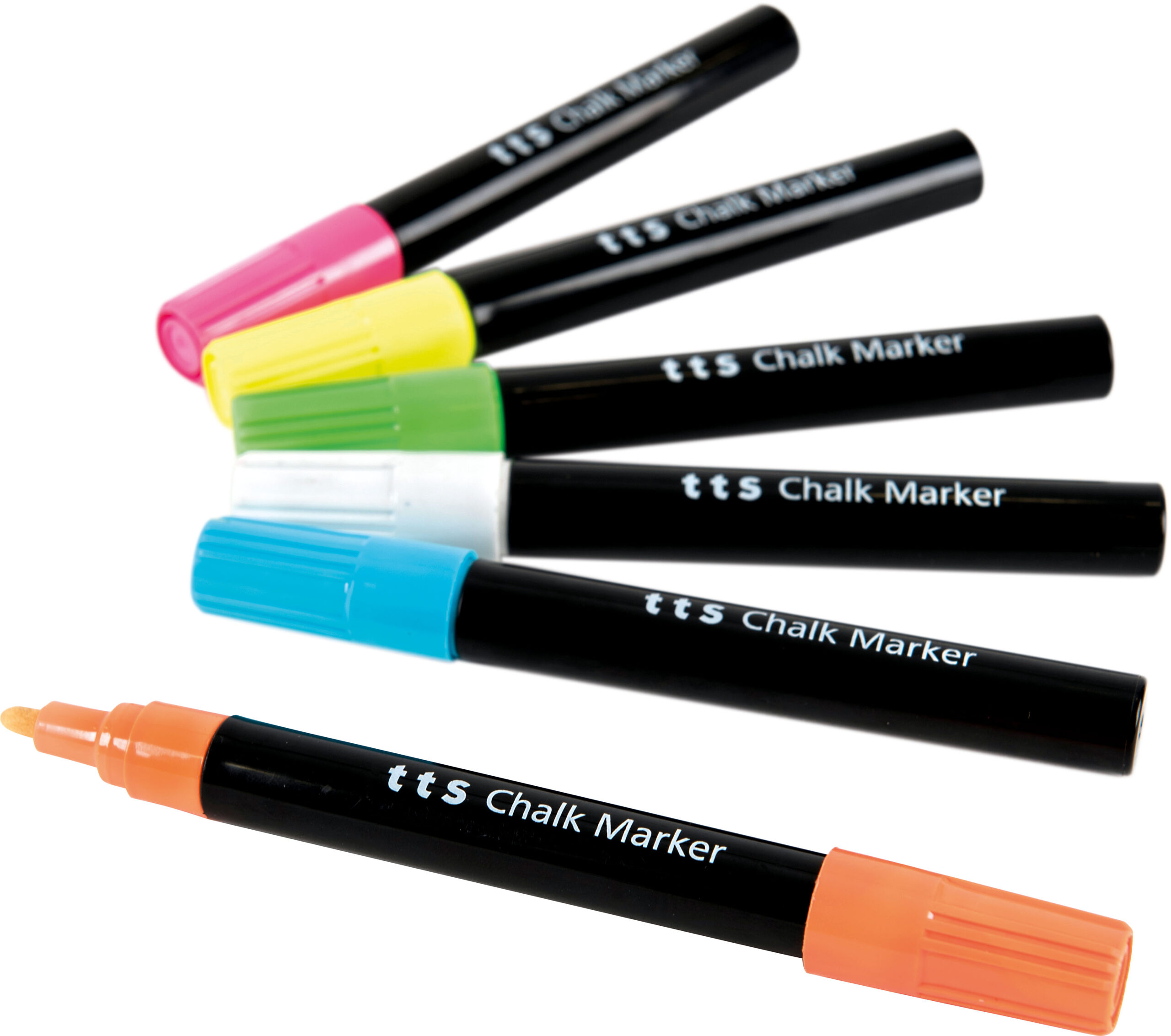 Kreidiniai žymekliai su pigmentuotu rašalu, skirti naudoti su balta lenta. Ją galite įsigyti čia: https://kodelciukas.lt/produktas/sviecianti-piesimo-lenta-356121-356178/. Juos taip pat galima naudoti ant stiklo, plastiko ir kitų neporėtų paviršių. Nuo paviršiaus nuvalomas drėgnu skudurėliu.