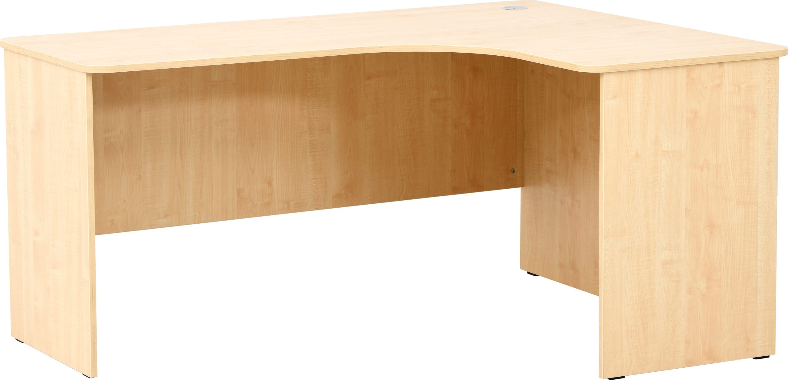 Kairiojo kampo rašomasis stalas, pagamintas iš 18 mm storio laminuotos plokštės, briaunos – 2 mm.