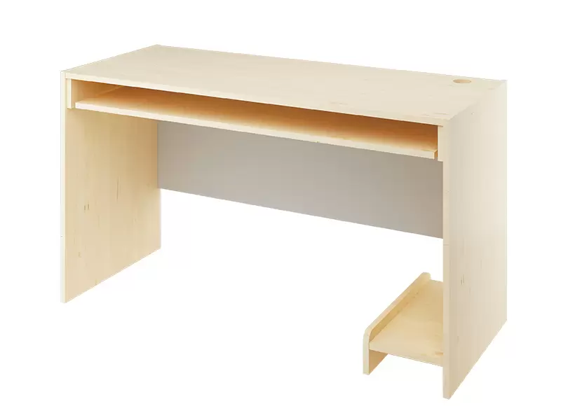 Konstrukcija pagaminta iš 18 mm storio beržo spalvos medžio drožlių plokštės, o stalo nugarėlė sustiprinta pilka plokšte. Stalas yra tvirtas ir estetiškas, puikiai tinka modernioms mokymo erdvėms.