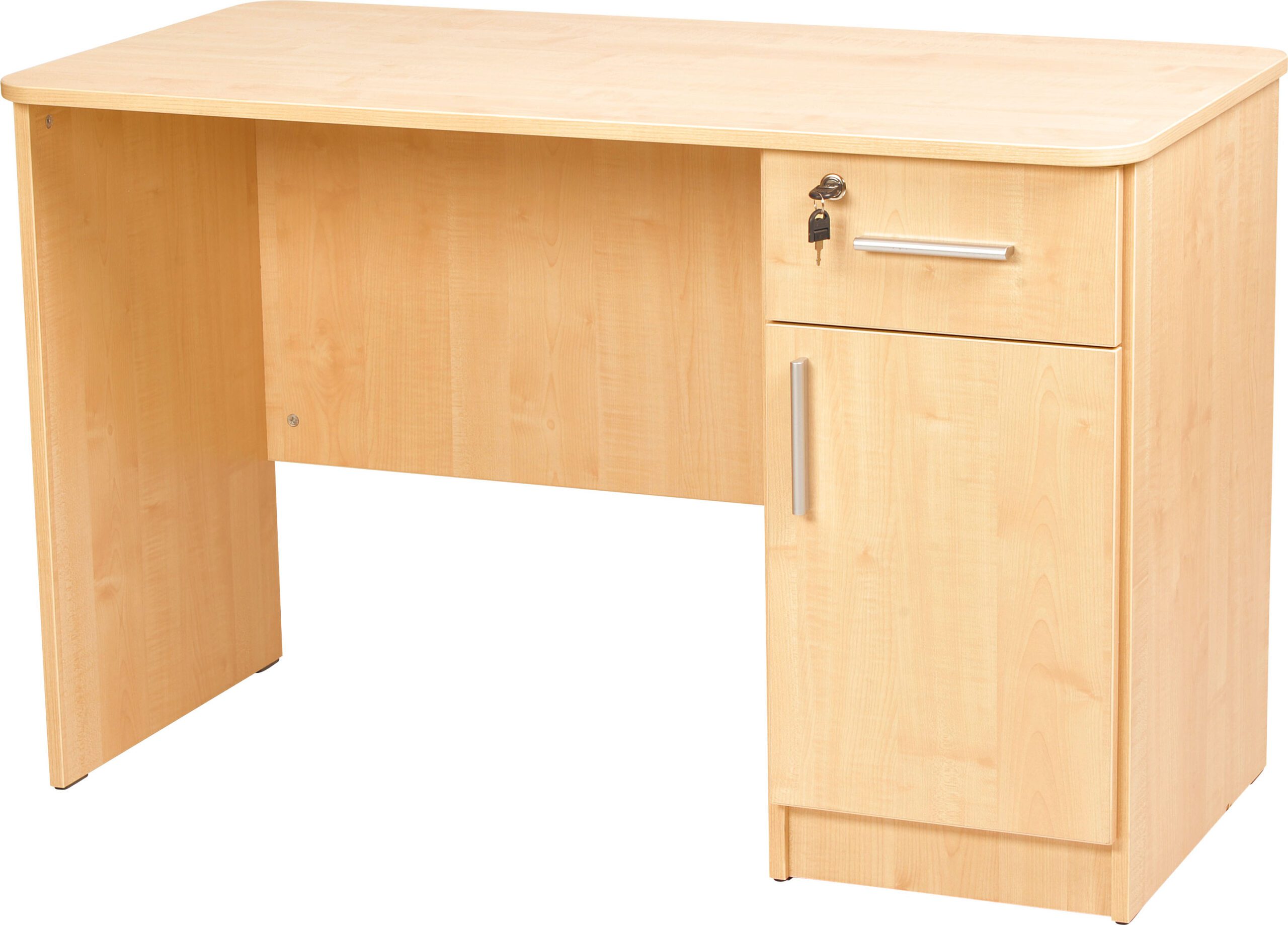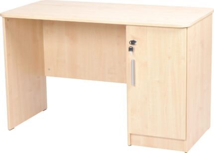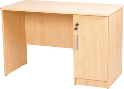 Rašomasis stalas su korpusu, pagamintu iš 18 mm storio buko arba klevo laminuotos plokštės, apdailintas 2 mm briaunomis su užapvalintais kampais.