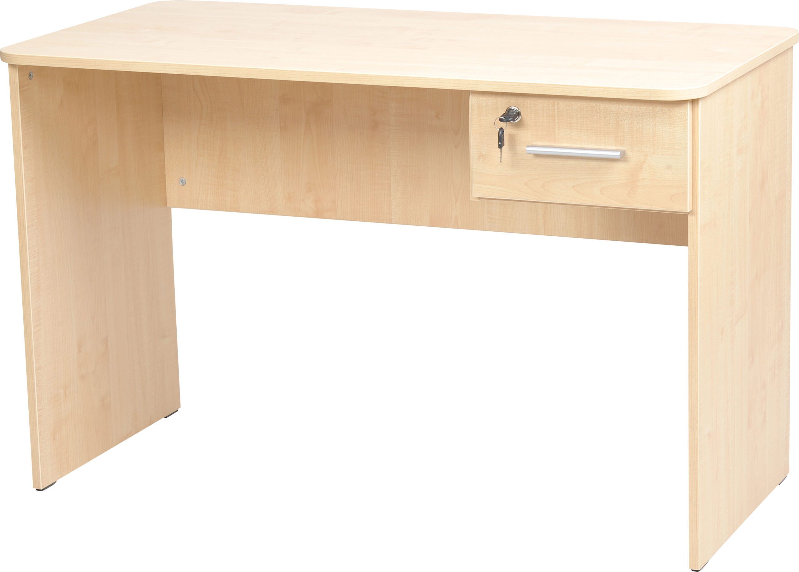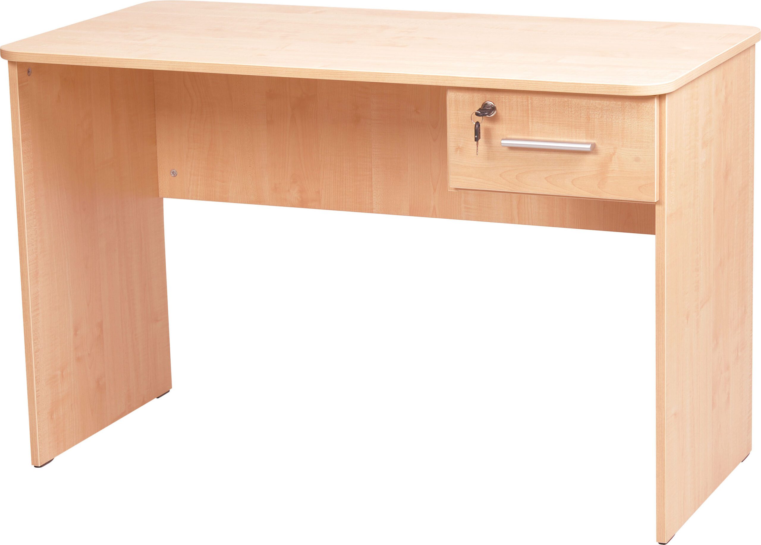 Rašomasis stalas su 1 stalčiumi, pagamintas iš 18 mm storio buko arba klevo spalvos laminuotų plokščių, apdailintas 2 mm storio briaunomis su užapvalintais kampais.