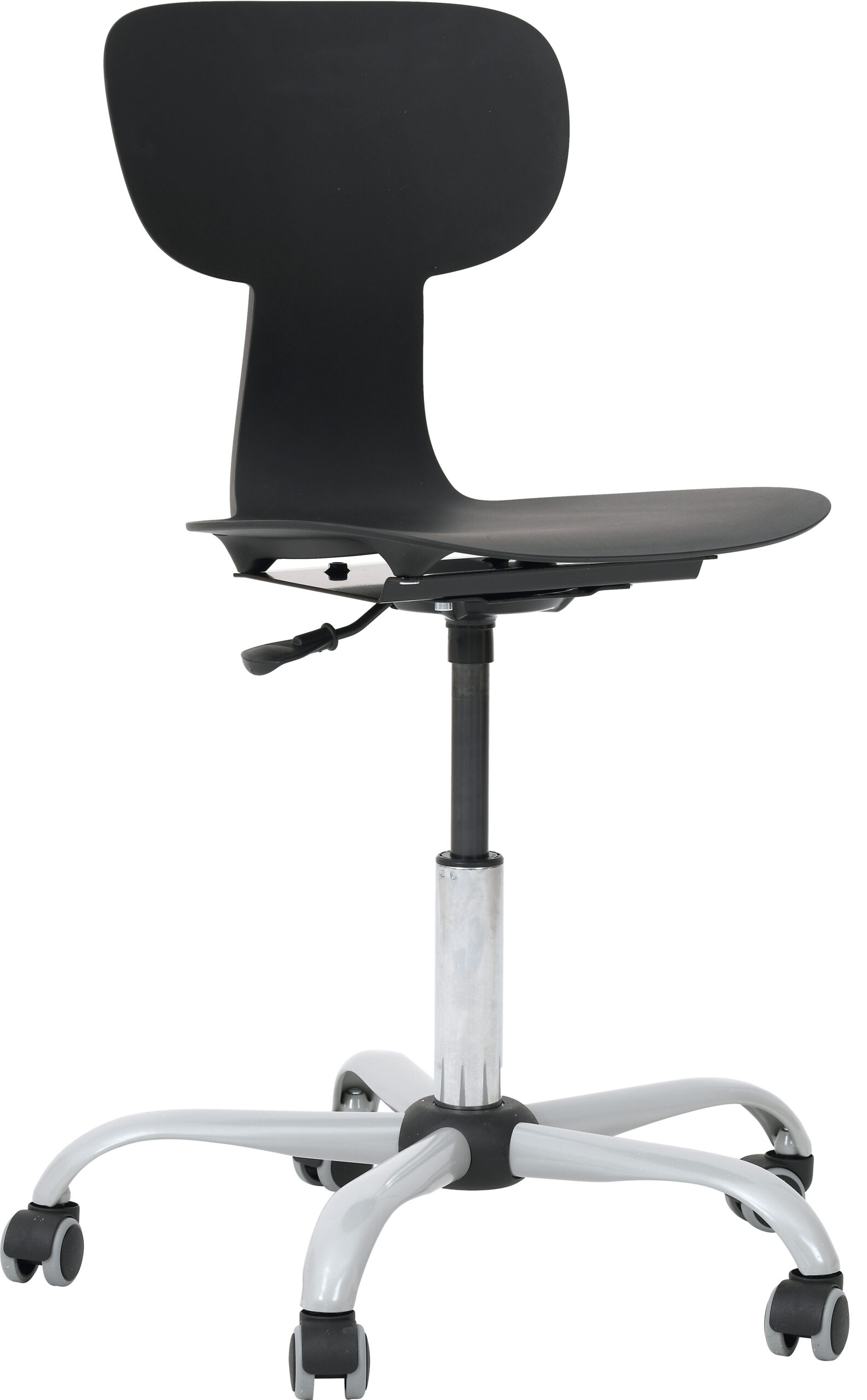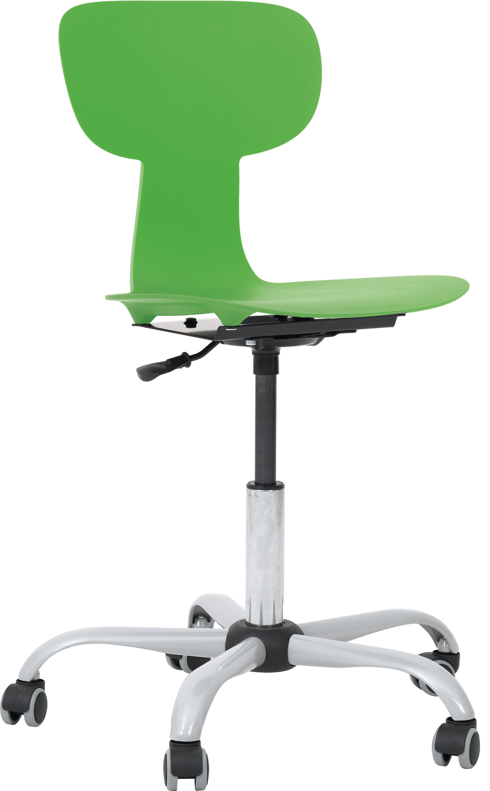 Mobilioji ergonomiška kėdė Ergo su aukščio reguliavimo mechanizmu (43–56 cm) ir ratukais – puikus pasirinkimas mokyklų kompiuterių klasėms. Elastingas atlošas prisitaiko prie nugaros, plati bazė užtikrina stabilumą. Kėdė atspari drėgmei, nešvarumams, turi neslystančią, grublėtą ir atsparią įbrėžimams sėdimąją dalį.