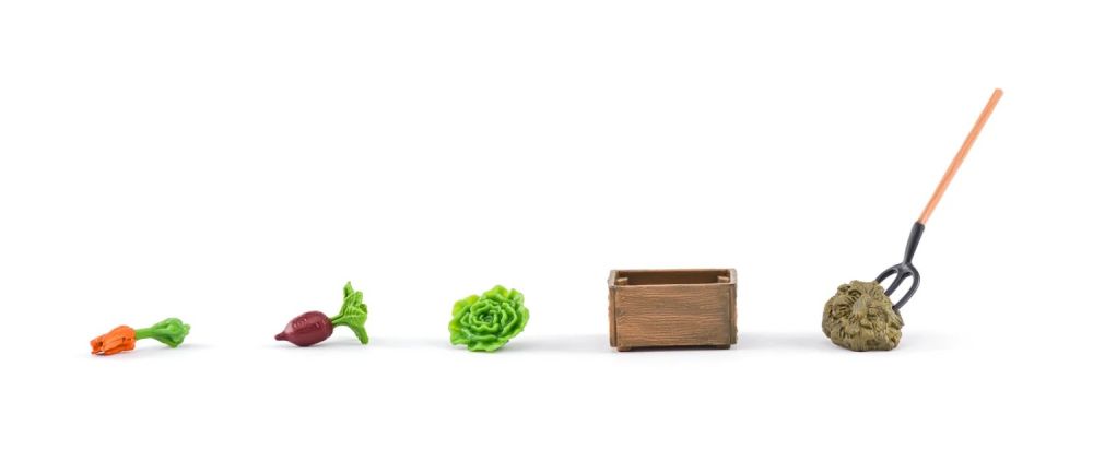 Šiame kompoziciniame rinkinyje tikrai gausu gyvūnų ir įvairių priedų. Jame yra gyvūnai su savo mažyliais, ūkininkas su ūkininke, ūkio pastatas su aptvarais ir daug kitų priedų. Leiskitės įtraukiami į žaidimą ir persikelkite į ūkininkavimo pasaulį. Gyvūnai: karvė, veršelis, avis, kiaulė, ožka, ožiukas, strutiena, gaidys, višta ir žąsis.