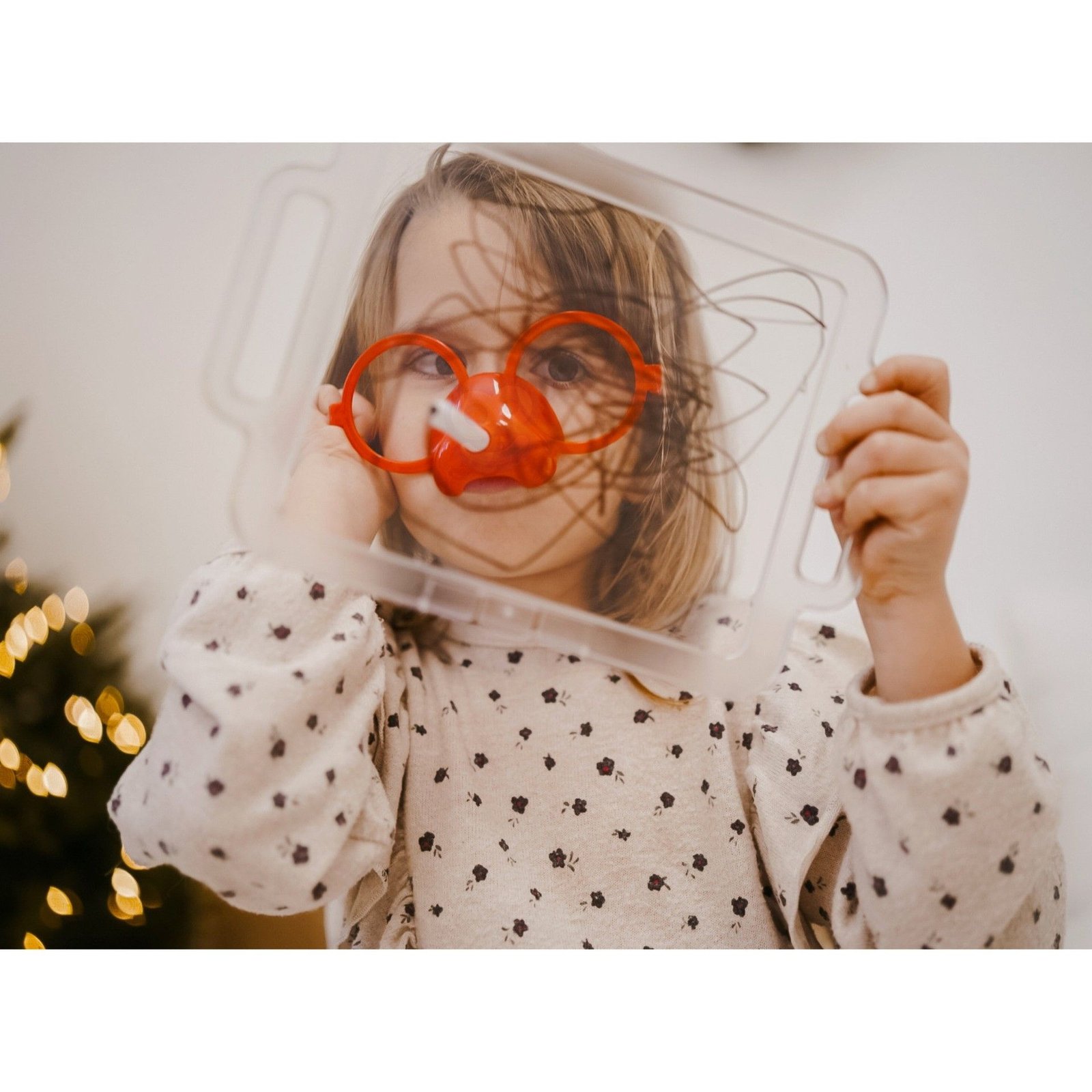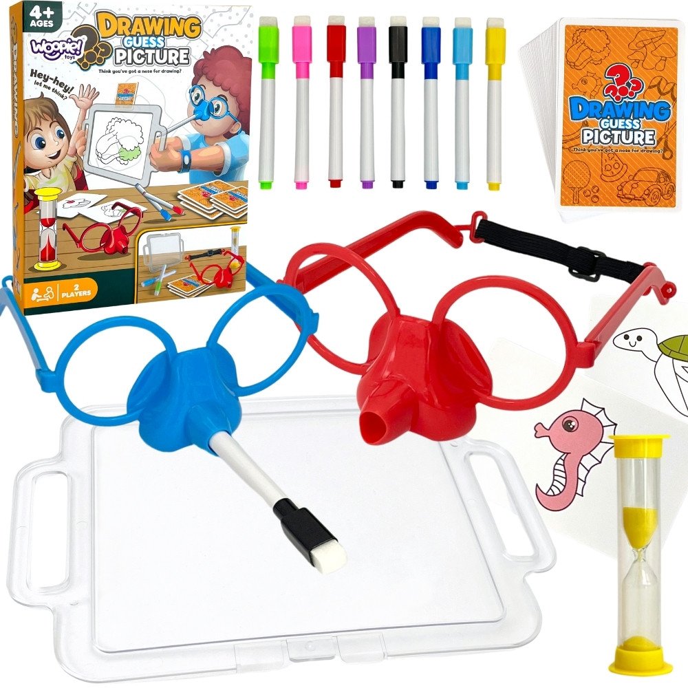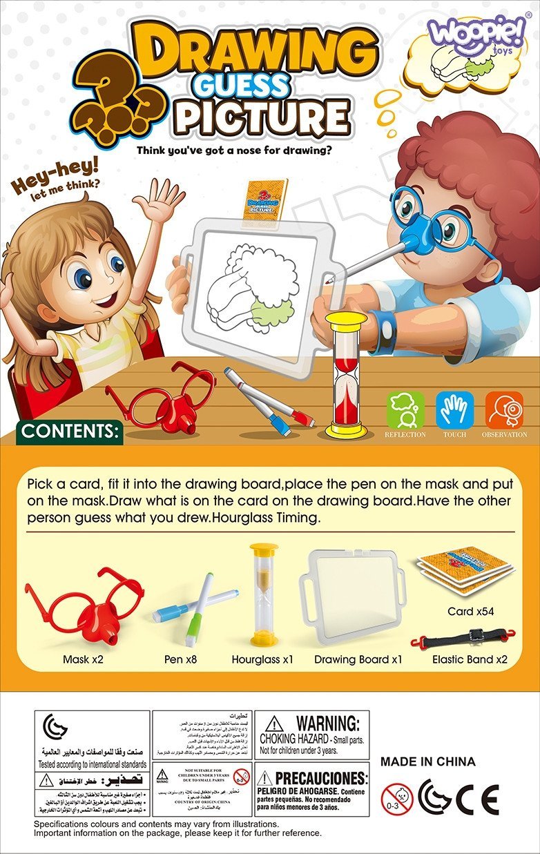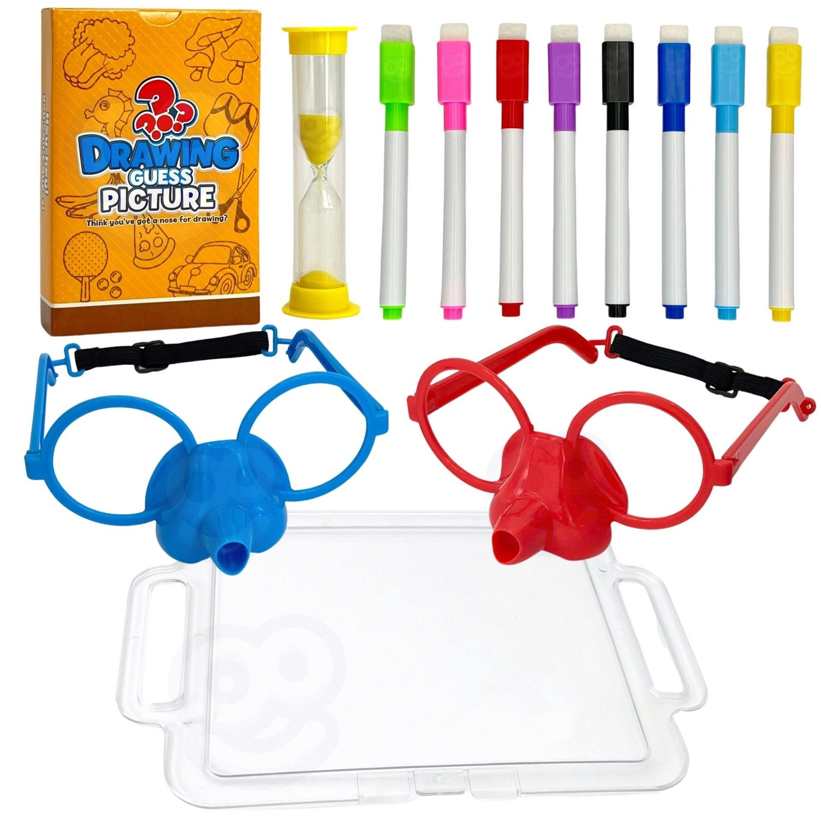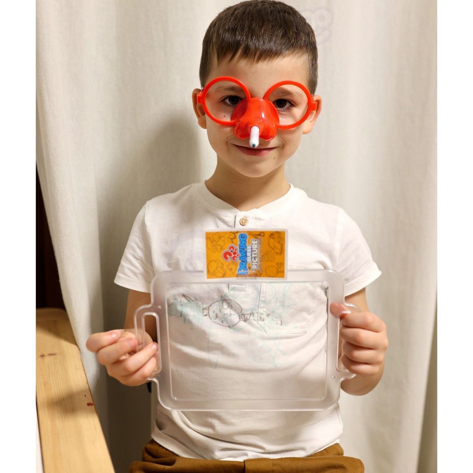 - Žaidėjas laiko lentas priešais save, jis turi piešti nosimi paveikslą, kurį mato ant kortelės