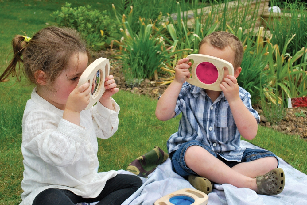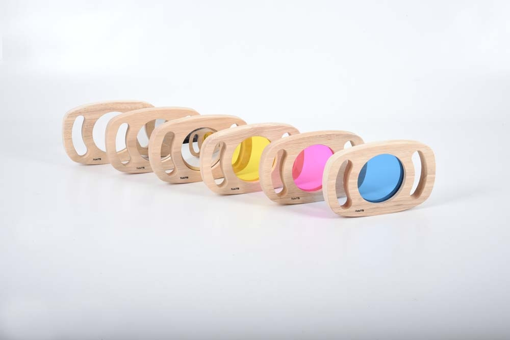 Rinkinį sudaro 3 permatomos akrilo šviesiai raudonos, mėlynos ir geltonos spalvų plokštės, didinamasis lęšis (su 2x ir 3x didinimu), dvipusis išgaubtas ir įgaubtas veidrodis ir plokščias veidrodis.
