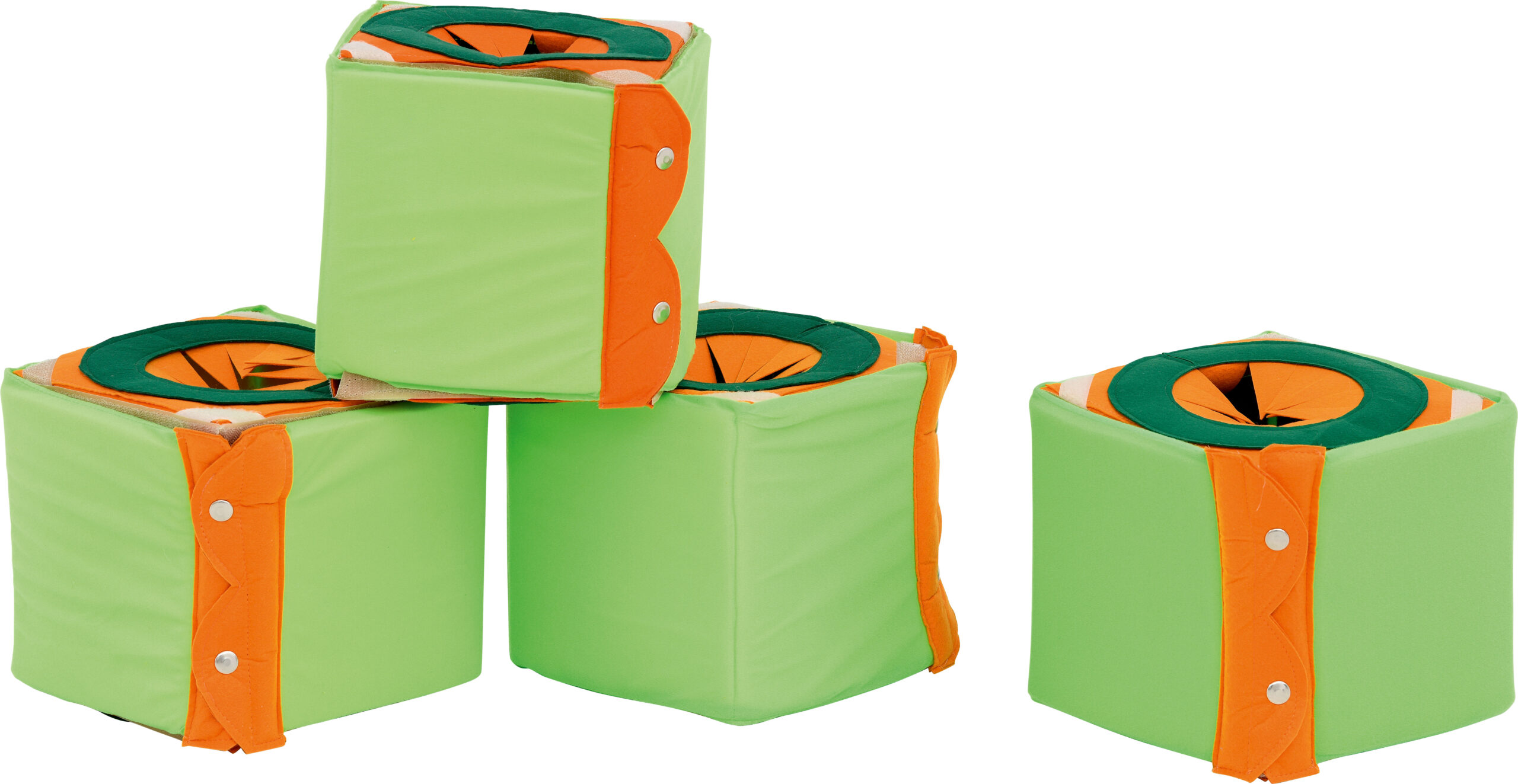 Pagamintas iš minkšto, saugaus putplasčio, aptraukto veliūru ir veltiniu. Jas galima visiškai atsegti ir sulankstyti. Kiekvienos dėžutės viduje yra skirtingos tekstūros: aštrios, slidžios, minkštos ir kietos. Įkišęs ranką į šonines angas, naudotojas turi atspėti, kokia erdvė supa jo ranką. Dėžes galima sujungti vieną už kitos, kad jų vidus sudarytų gilų tunelį. Juos taip pat galima išdėstyti bet kokia tvarka, kad nustebintų naudotoją. Papildomai stimuliuoja du kamuoliukai (įsigyjami atskirai, pvz., 522010). Pratimus galima atlikti viena ranka arba abiem rankomis vienu metu, pvz., stumdant kamuoliukus pro apvalias skylutes į atskiras dėžučių kameras. Minkštos, saugios talpyklos gali būti paslaptingos dėžutės. Minkštus, saugius konteinerius galima naudoti kaip paslapčių dėžutes, į kurias galima dėti įvairius daiktus ir žaisti žaidimą "atspėk, koks daiktas yra tavo rankoje".