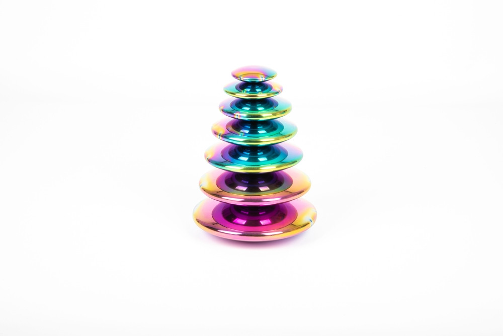 Spalvų pliūpsnio efektas suteikia kiekvienam akmenukui ryškių metalo atspalvių spektrą ir atspindį, kuris iškraipomas tarsi lęšis, kad vaikai galėtų pamatyti save ir aplinką.