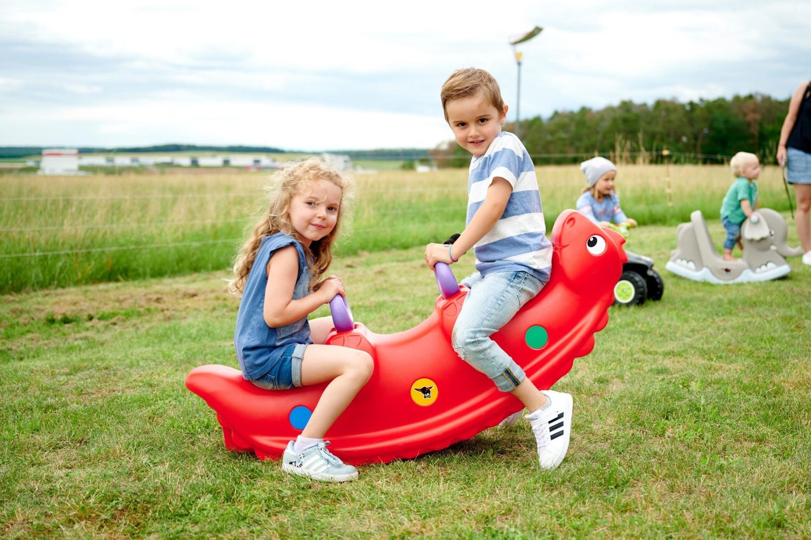- – tvirtos rankenai užtikrina saugumą, o dinozauro nugaros skalės neleidžia per daug smarkiai sūpuotis,