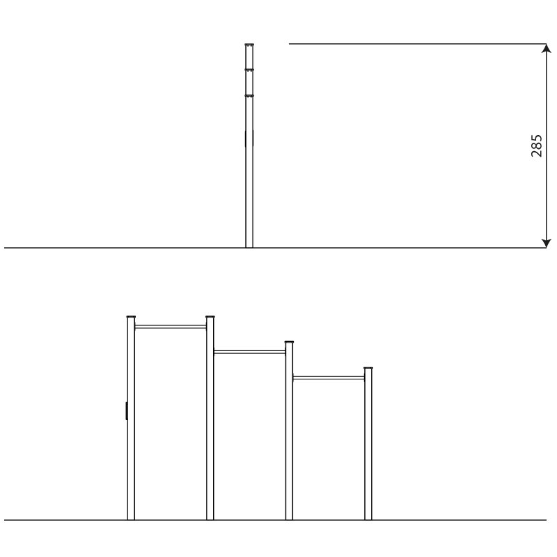 • 100 x 100 mm cinkuota ir milteliniu būdu padengta arba nerūdijančio plieno konstrukcija,
