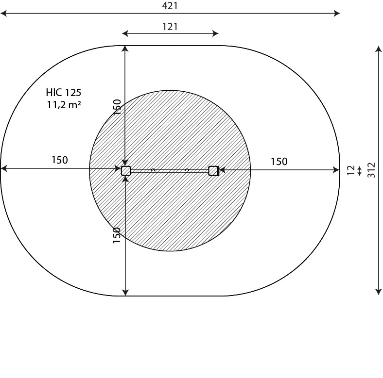 Laisvo kritimo aukštis 125 cm