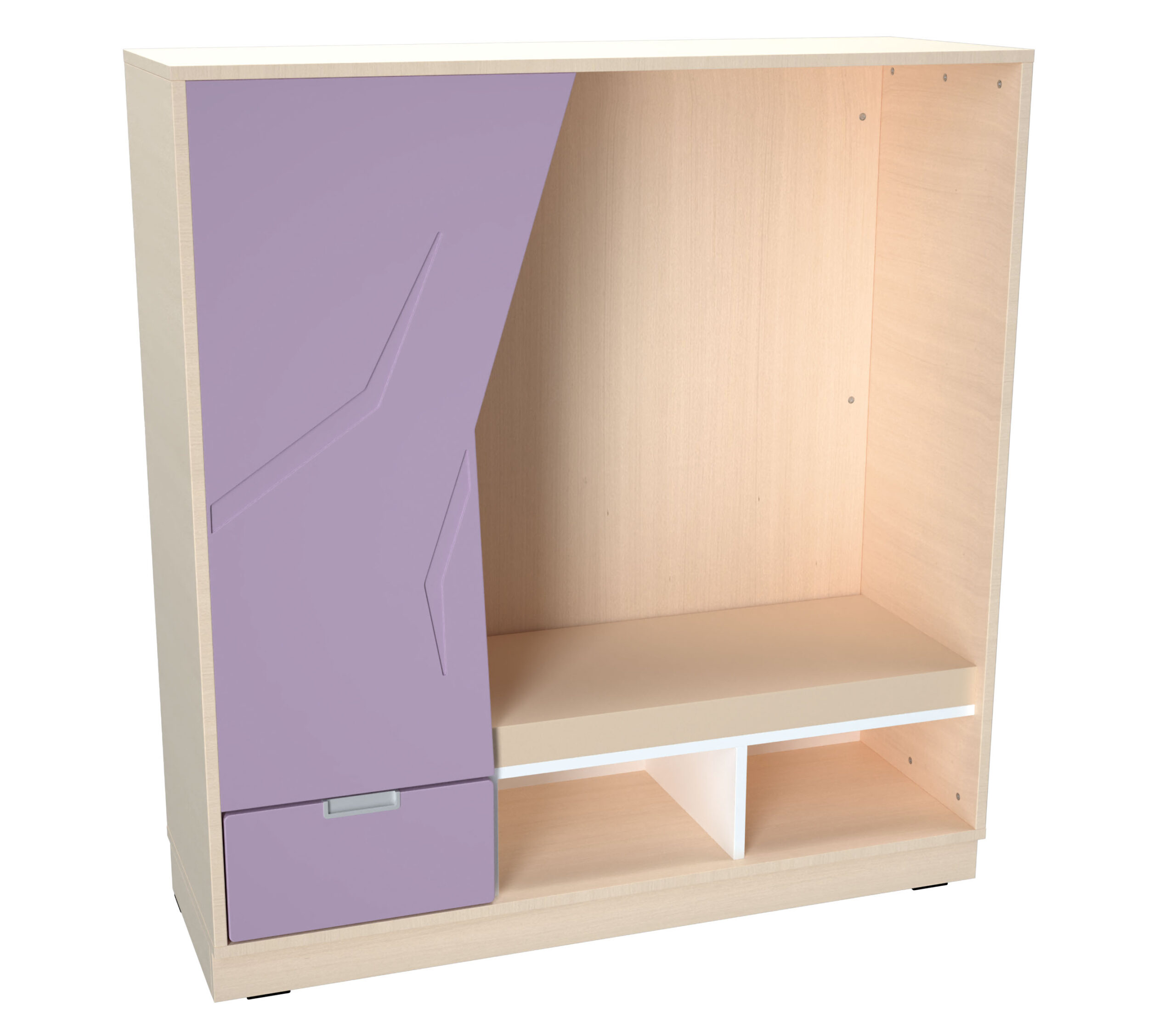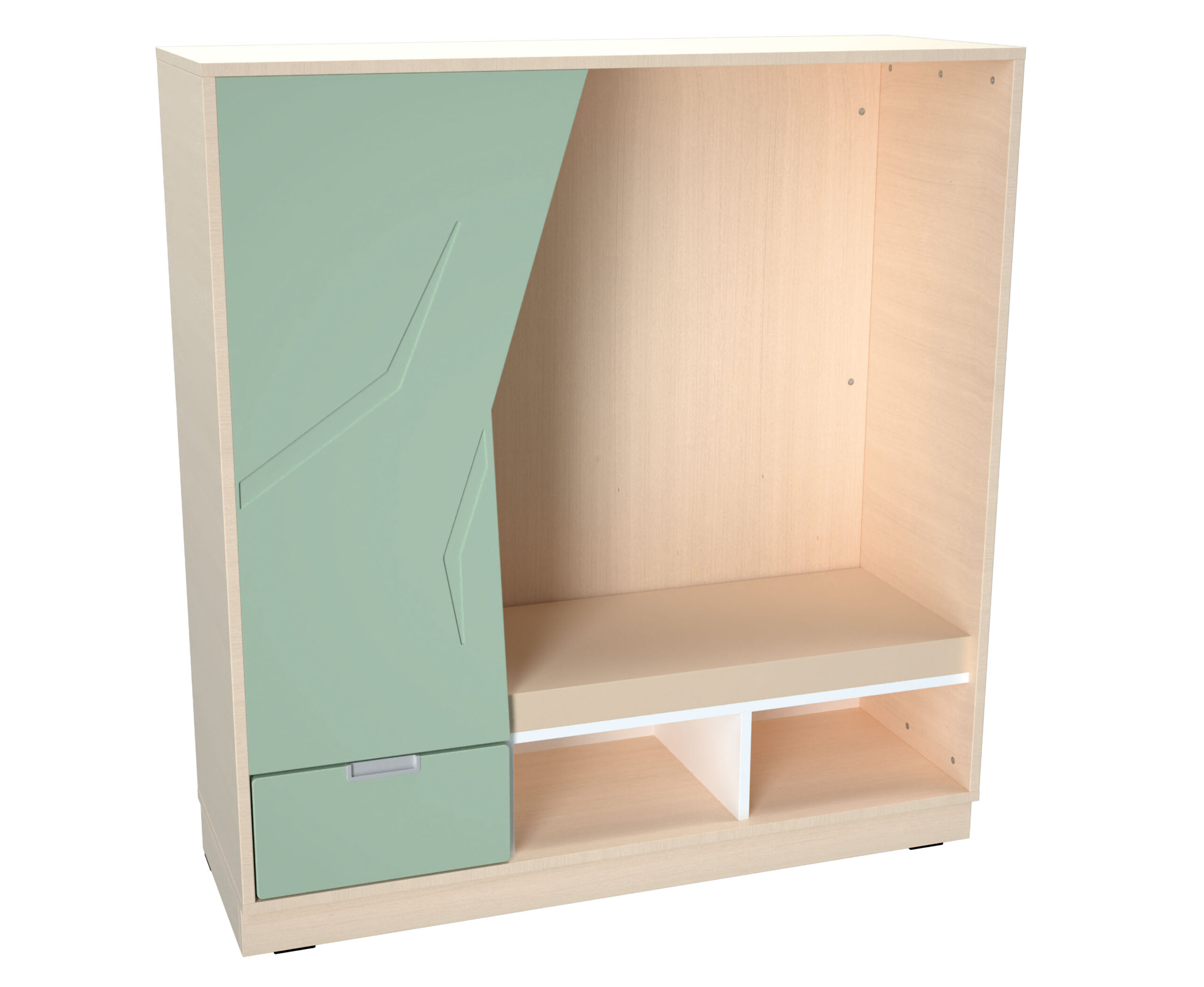 Iš dalies uždara spintelė su čiužiniu, kad vaikai galėtų patogiai atsisėsti, atsipalaiduoti ir nusiraminti. Apatinėje dalyje yra du skyriai ir stalčius smulkiems daiktams. Pagaminta iš 18 mm storio laminuotos klevo atspalvių plokštės, poroloniniai čiužinukai aptraukti patvariu PVC audiniu, kurį lengva palaikyti švarų. – čiužinio storis 5 cm – matmenys 116,6 x 41,5 x 124,2 cm – apatinių skyrių ir stalčiaus matmenys 37 x 41,5 x 18 cm – atstumas tarp sėdynės ir viršaus: 93 cm