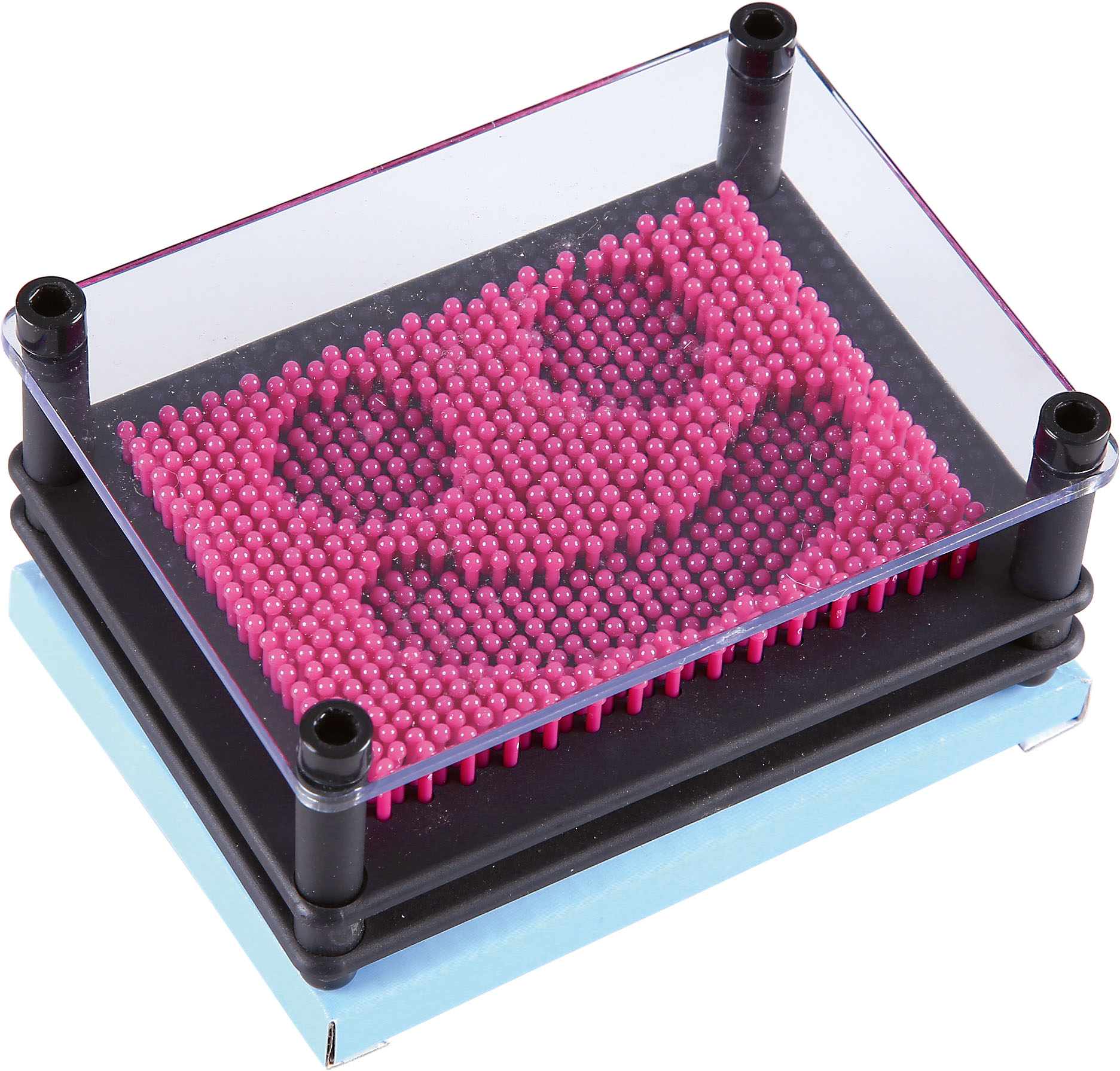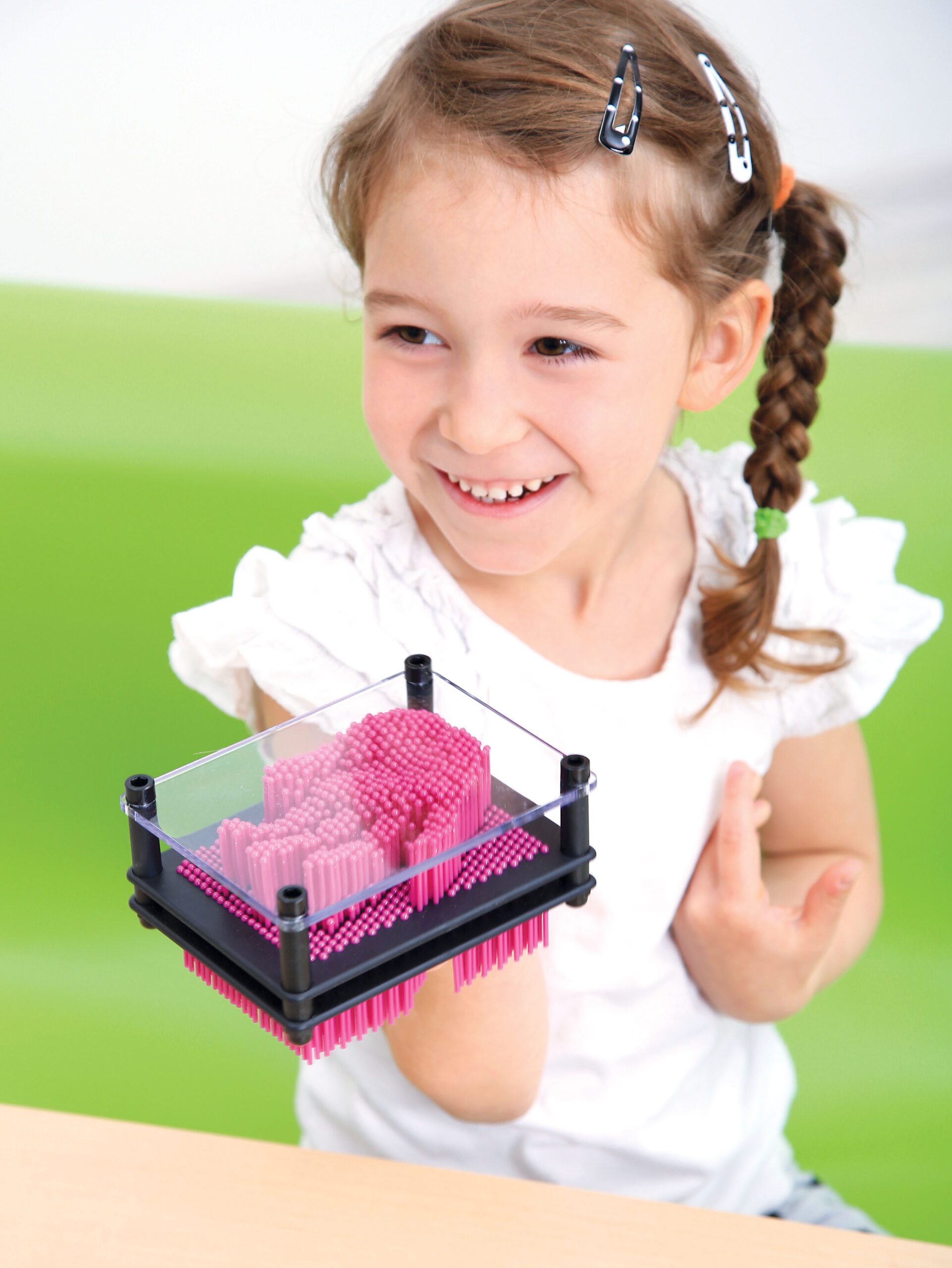 Kūrybiška mozaika, pagaminta iš saugių smeigtukų, į kurią galite įspausti bet ką, kas jums patinka, ir išgauti 3D atspindį. Žaislas tinka ir mažiems, ir dideliems, garantuoja pramogą ilgoms valandoms. Jis linksmina, lavina vaizduotę ir kūrybiškumą, didina erdvinį suvokimą ir, svarbiausia, stimuliuoja pojūčius.