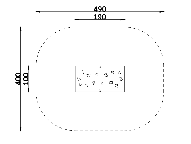 Saugos zona: 490 x 400 cm